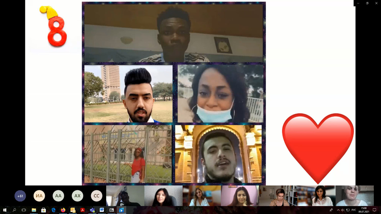 Выпускной вечер слушателей подготовительного отделения для иностранных граждан и лиц без гражданства состоялся 8 июля в уже привычном для всех дистанционном формате. Поздравили выпускников с окончанием обучения и пожелали им дальнейших успехов проректор по довузовскому и дополнительному профессиональному образованию Семен Юрьевич Кустов и директор департамента по международным связям Галина Николаевна Говорова.