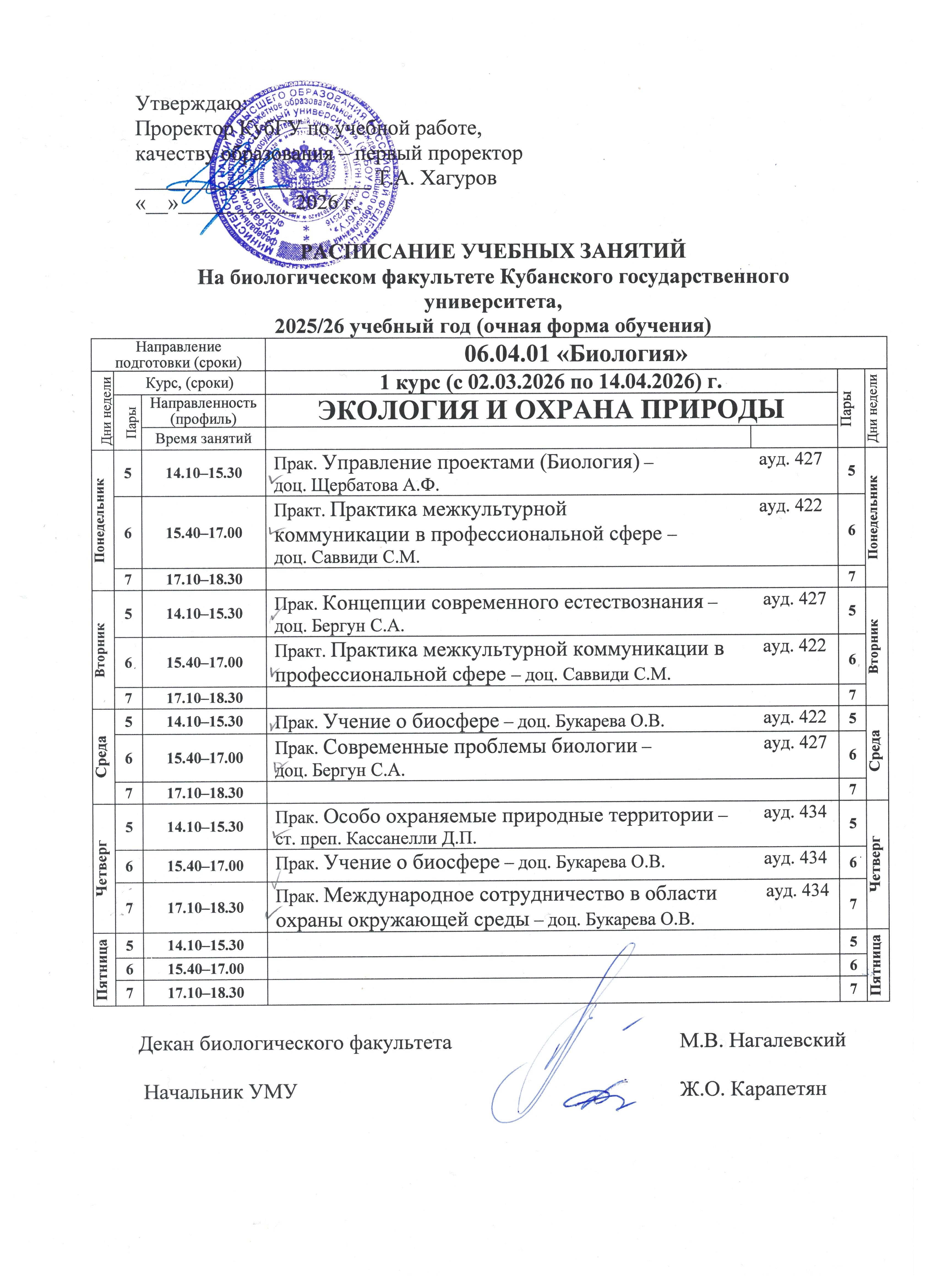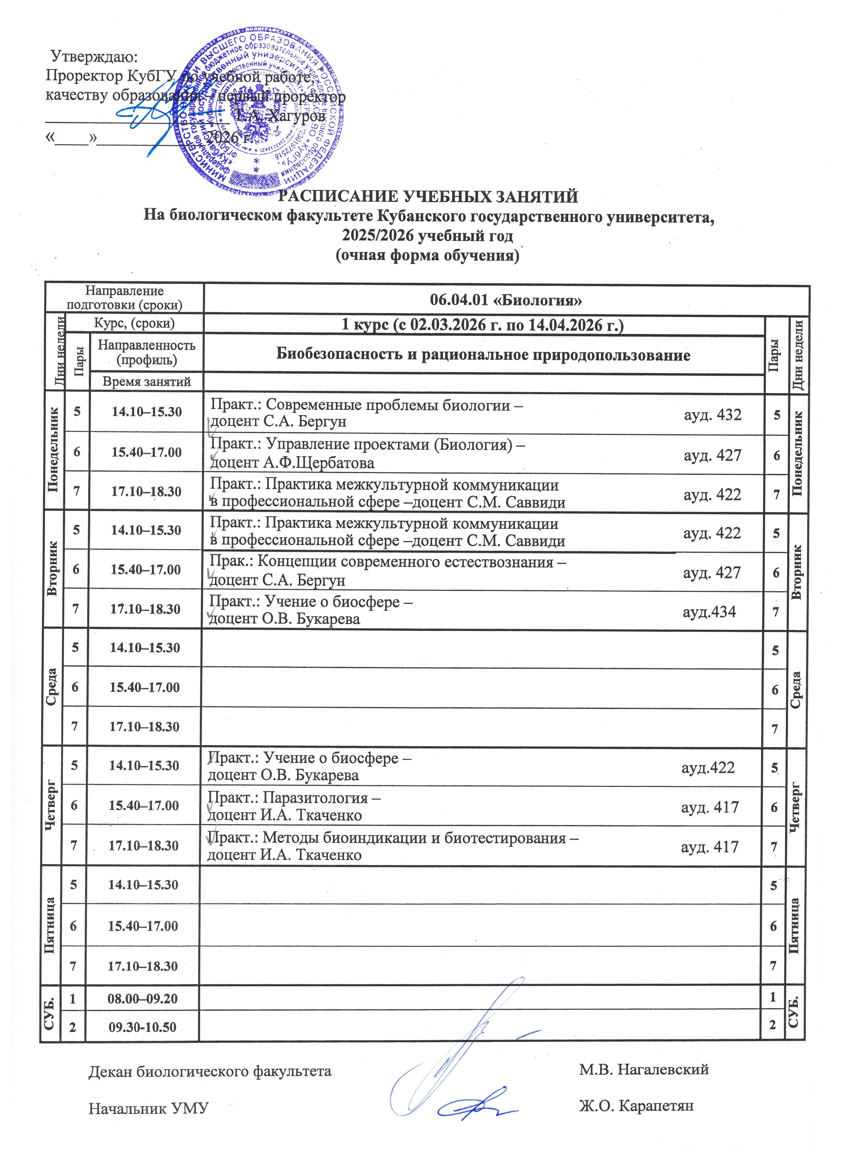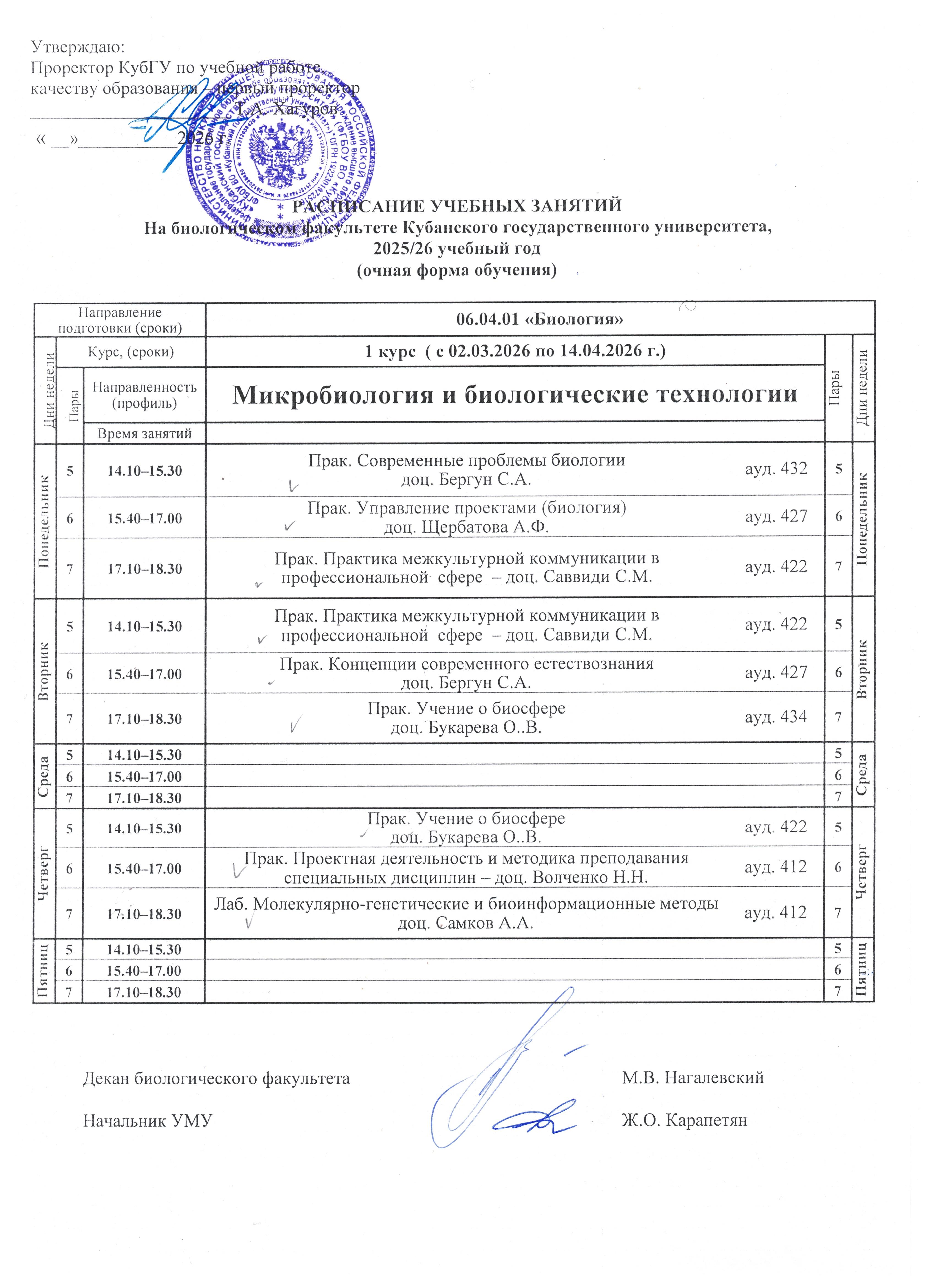 Расписание звонков в КубГУ