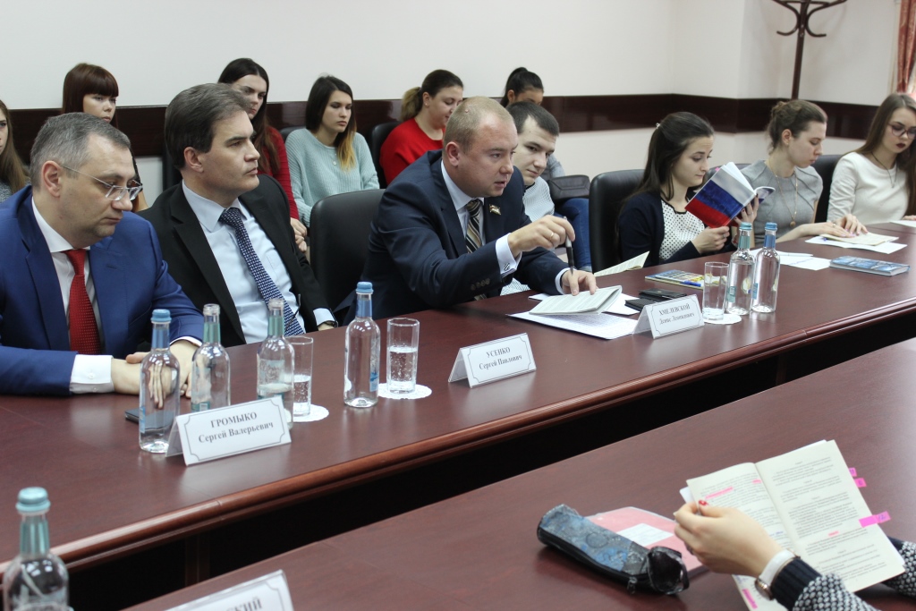 В работе круглого стола приняли участие заместитель председателя Законодательного Собрания Краснодарского края – председатель комитета по вопросам имущественных и земельных отношений С.П. Усенко и секретарь комитета, депутат ЗСК Д.Л. Хмелевской, первый заместитель главы Центрального внутригородского округа города Краснодара, заслуженный юрист Кубани С.В. Громыко, секретарь избирательной комиссии муниципального образования город Краснодар В.И. Михеева, профессор кафедры государственной политики и государственного управления факультета управления и психологии КубГУ А.М. Ждановский, а также преподаватели и студенты.