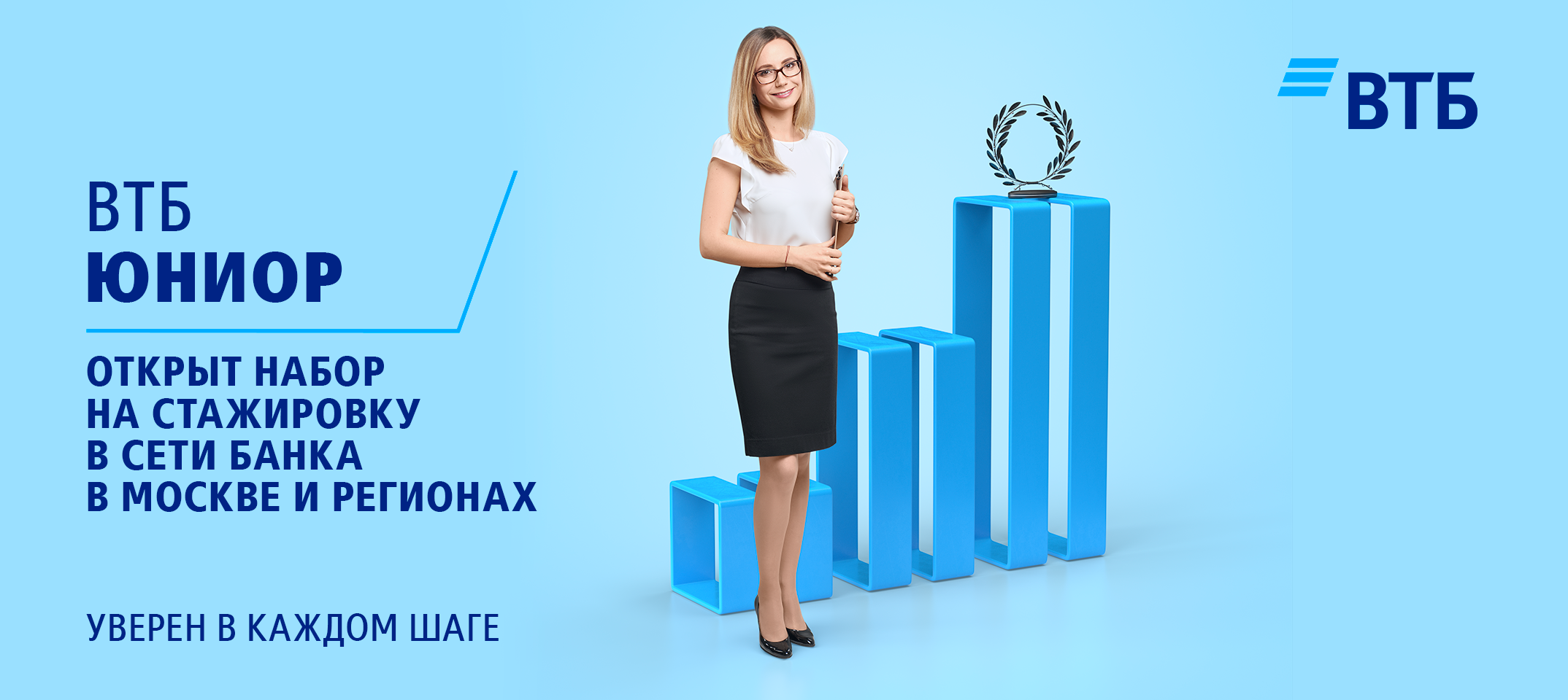 Дайте уверенный старт вашей карьере — станьте участником оплачиваемой стажировки ВТБ Юниор для сети в Москве и регионах. Программа проходит в более чем 60 городах России для выпускников бакалавриата и студентов магистратуры. Основные подразделения: розничный бизнес, а также средний и малый бизнес. А еще на стажировке ВТБ Юниор вас ждут: