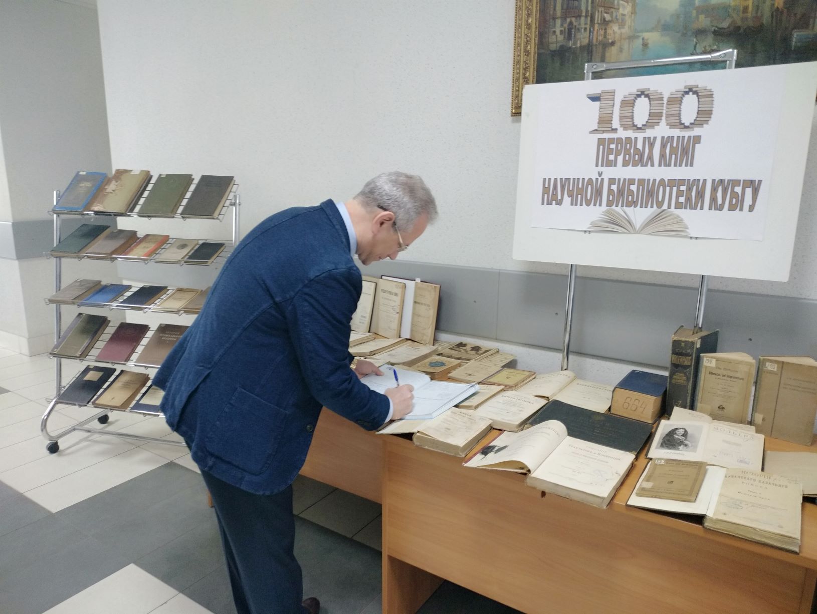 18.02.2020, в рамках Всероссийской (с международным участием) научно-практической конференции «Кубанский государственный университет: 100 лет в истории России», Научная библиотека КубГУ провела тематическую книжную выставку «100 первых книг Научной библиотеки КубГУ».