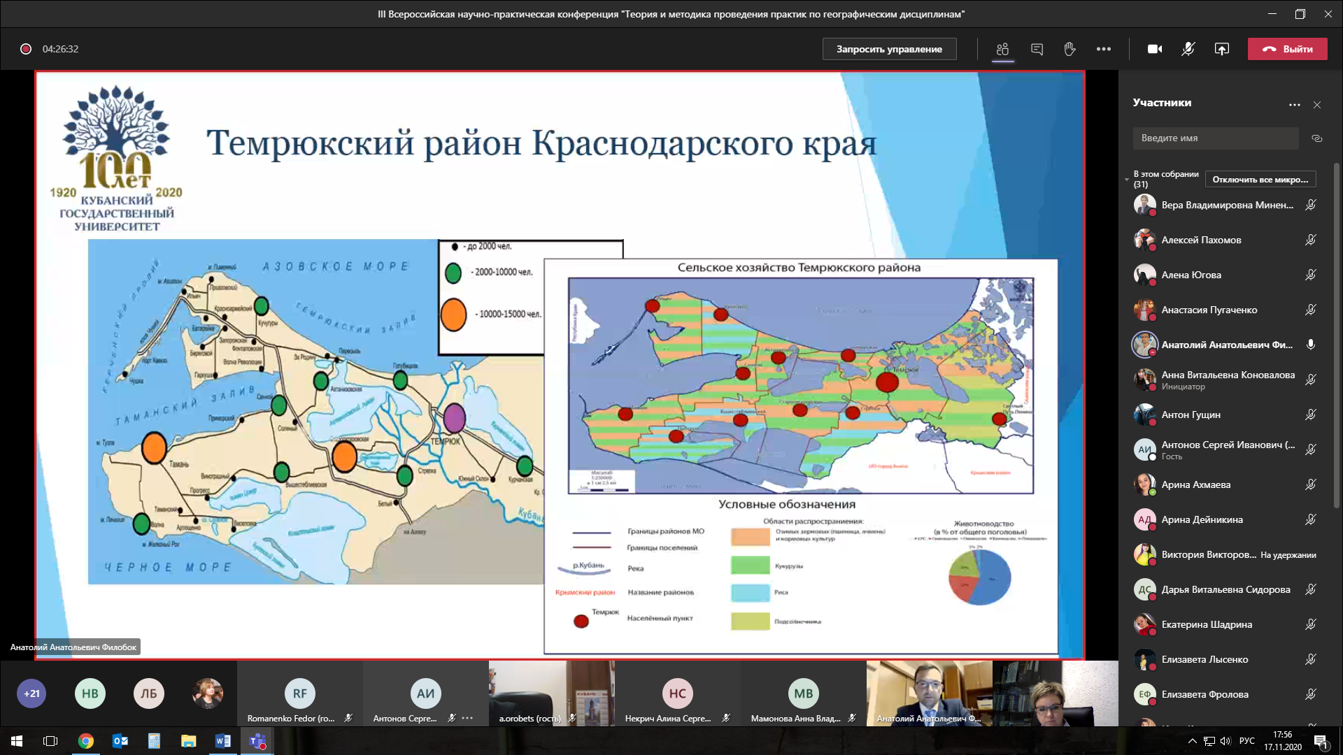 Кафедра экономической, социальной и политической географии Института географии, геологии, туризма и сервиса Кубанского государственного университета совместно с отделом развития образования Краснодарского научно-методического центра, Малой академией, Молодежным клубом Русского географического общества на базе КубГУ и Ассоциацией выпускников географических факультетов 17 ноября 2020 года провели III Всероссийскую научно-практическую конференцию «Теория и методика проведения практик по географическим дисциплинам». Конференция прошла в онлайн-формате на платформе Microsoft Teams.