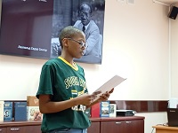 21 марта в Научной библиотеке КубГУ прошел поэтический вернисаж «Поэзии чарующие строки», посвященный Всемирному дню поэзии. В уютной поэтической гостиной библиотеки собрались те, кто искренне ценит красоту слова и магию поэтического искусства. Это уже стало доброй традицией, объединяющей любителей литературы и творчества. Студенты и магистранты, полные энтузиазма, читали стихи известных классиков русской и мировой литературы: М. Лермонтова, М. Цветаевой, О. Мандельштама, В. Маяковского, Б. Пастернака, С. Есенина, К. Симонова, И. Бродского, Р. Рождественского, А. Твардовского, В. Высоцкого, Ю. Левитанского, Поля Верлена, Перси Шелли. В поэтическом вернисаже приняли участие: Александр Чирков (юридический факультет), Мария Дусь, Наталья Муковоз (ФУП), Марина Истомина, Андрей Кихней (ФМиКН), Александрина Седяшева (РГФ), Ксения Остроухова (филологический факультет), Анастасия Перехода (ФИСМО), Данил Петриченко (ИГГТиС), Алексей Козельский (ФТФ), Валерия Диденко (биологический факультет), Людмила Гулина (ФХиВТ). Гостями и участниками мероприятия стали иностранные студенты, изучающие русский язык. Диарра Тумани (Мали) прочитал стихи А. Твардовского «Рассказ танкиста», Беземе Крис Леви (Кот-д’Ивуар) - стихи В. Высоцкого «На братских могилах». Стихами собственного сочинения поделились Алексей Козельский, Данил Петриченко и гость поэтической встречи – сотрудник КубГУ Дугинов Олег Анатольевич. Атмосфера вечера была теплой и дружеской, каждый участник смог почувствовать себя частью особого мира, где царит поэзия и вдохновение, способные объединять сердца людей.