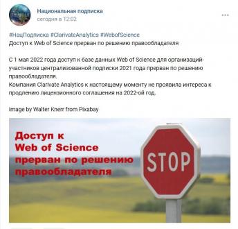 С 1 мая 2022 года доступ к базе данных Web of Science для организаций-участников централизованной подписки 2021 года прерван по решению правообладателя.