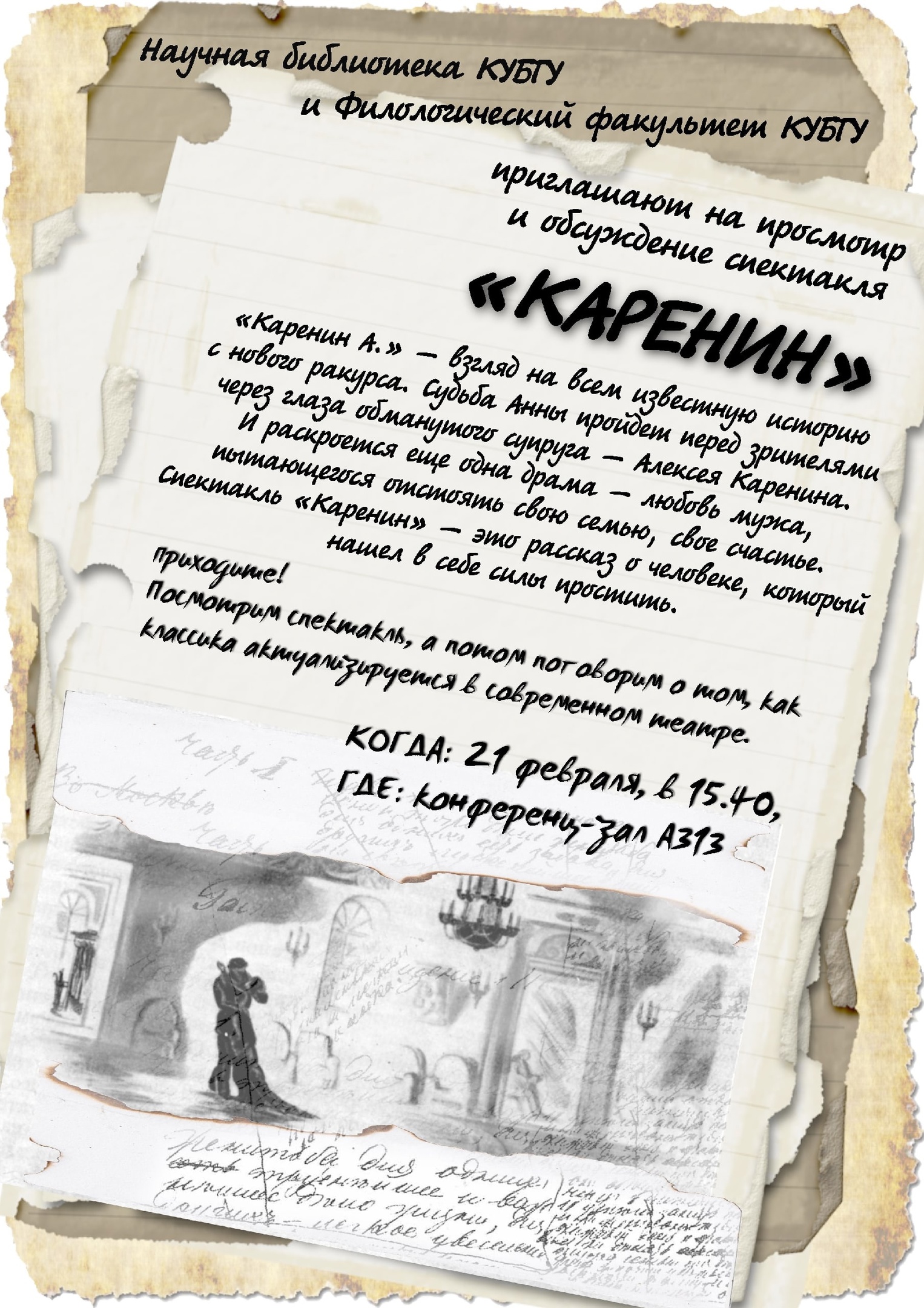 В Научной библиотеке КубГУ состоялся просмотр и обсуждение киноспектакля Тюменского драматического театра «Каренин А.».