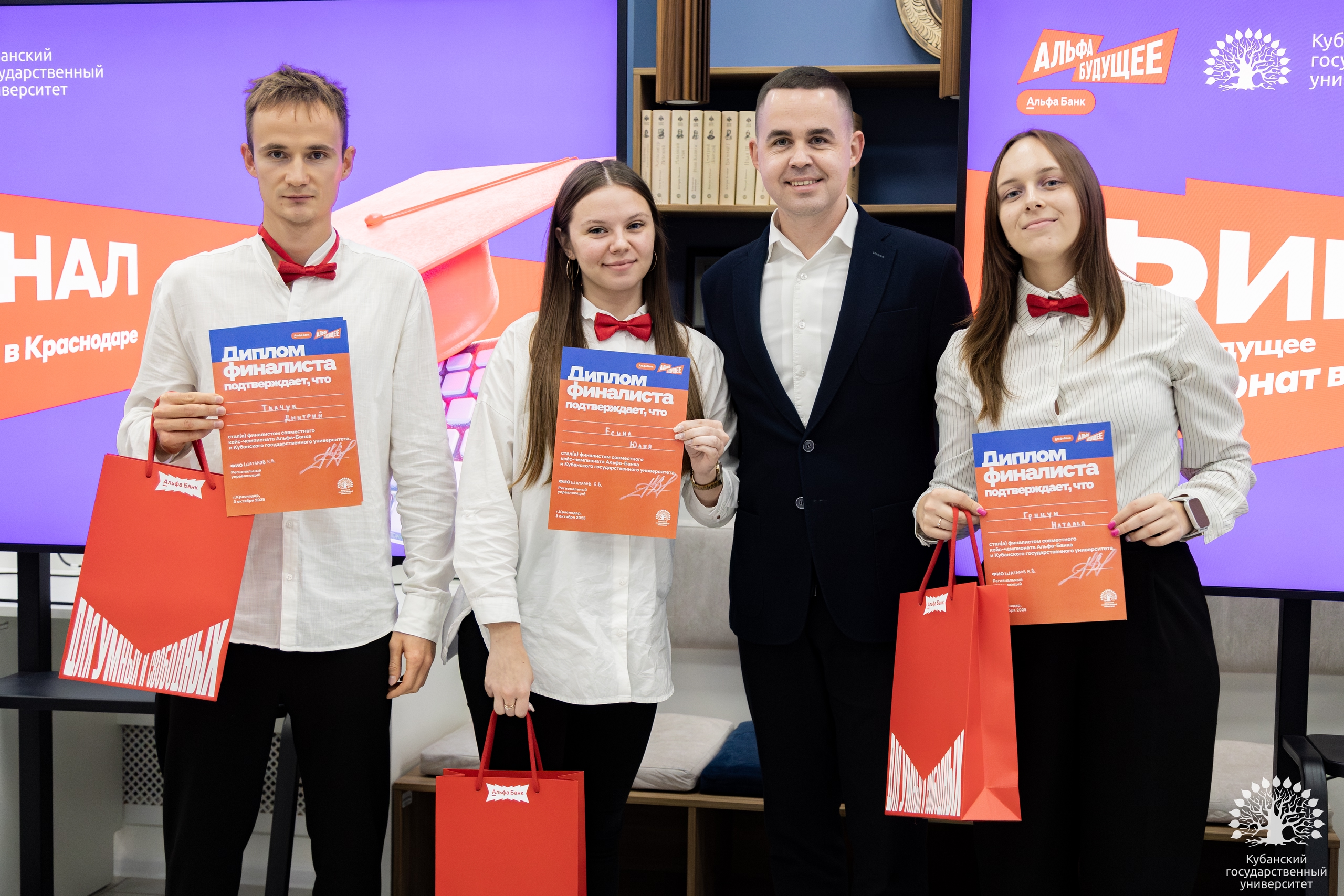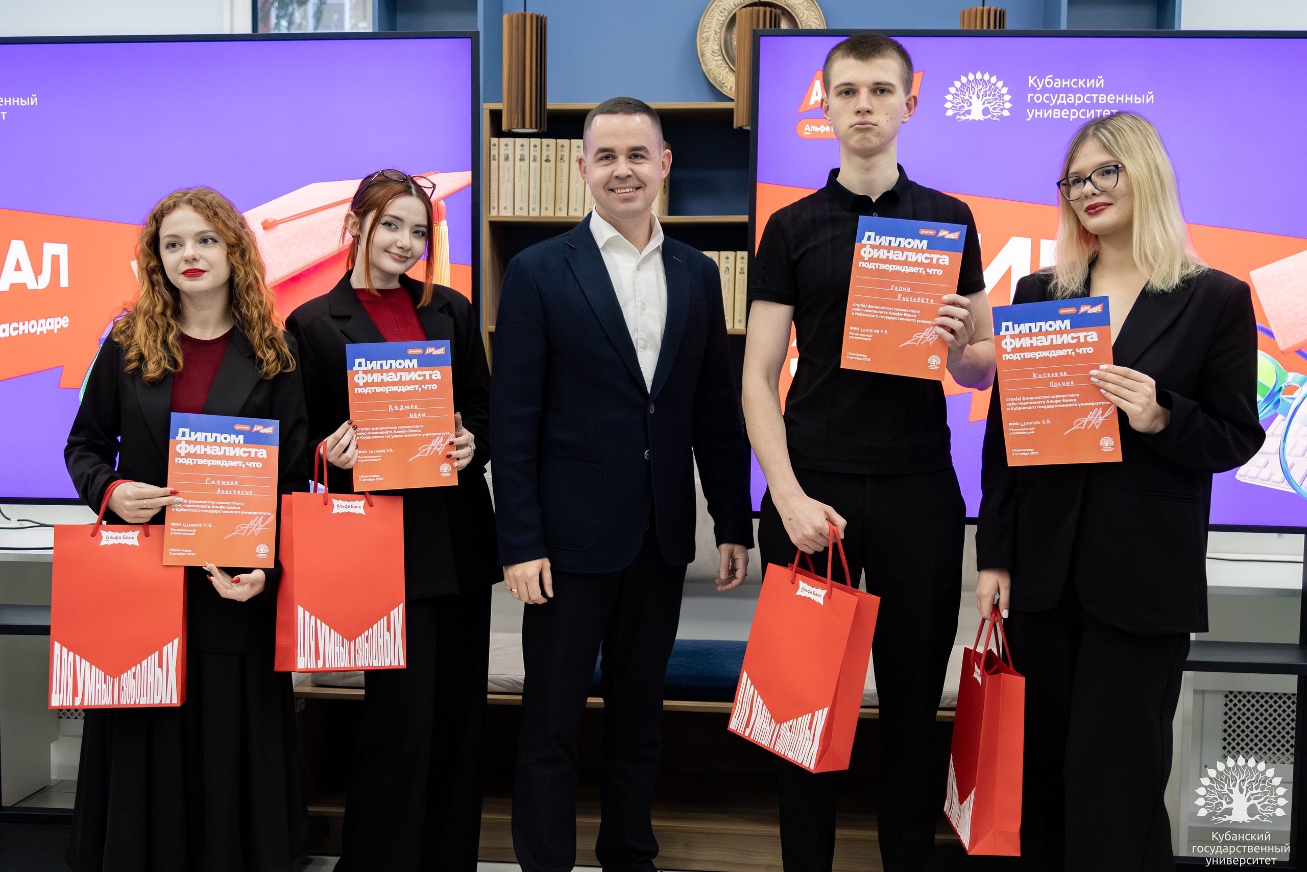 3 октября в Кубанском государственном университете состоялся финал кейс-чемпионата от Альфа-Банка и КубГУ — Альфа-Будущее, в ходе которого студенты могли примерить на себя роль настоящего новатора и предложить решение по развитию молодежных продуктов Альфы в регионе.