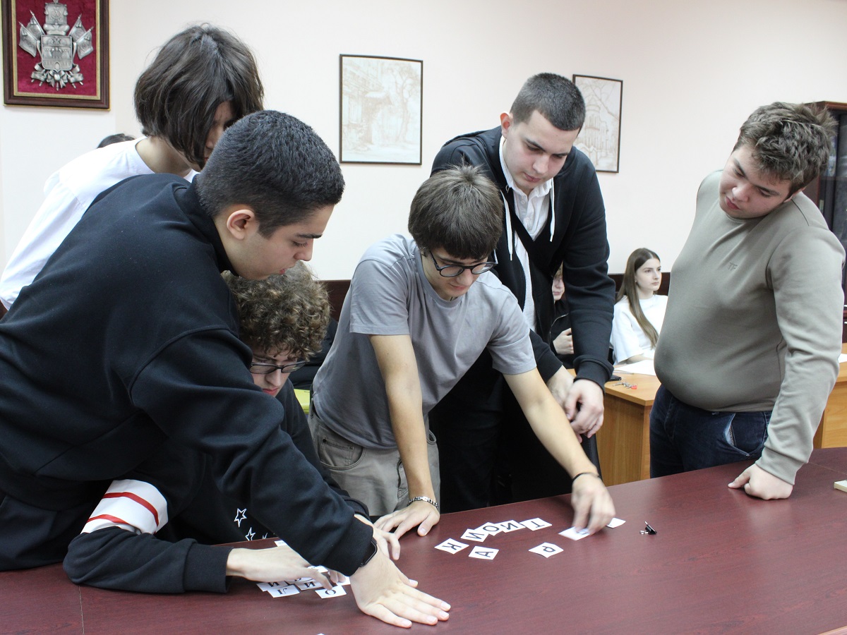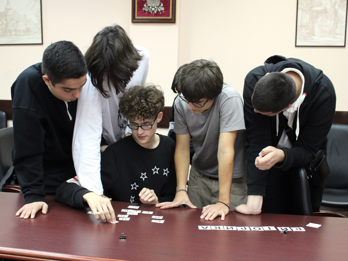 На втором этапе «Формула слова» студенты собирали пазлы из букв, составляя сложные научные термины, а затем доступно объясняли их смысл. С этим заданием участники справились на «отлично», показав высокий уровень командной работы, взаимопомощи и поддержки в достижении общей цели.