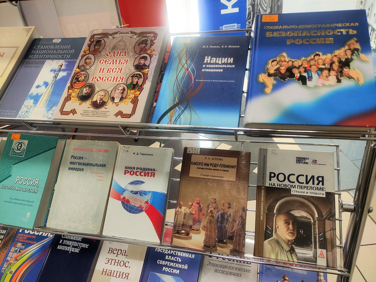 Вниманию читателей была представлена литература, по истории и культуре народов России, раскрывающая красоту культурного многообразия, национальные традиции, особенности быта и фольклора. Кроме этого - современные публикации по истории, этнографии и социологии, помогающие лучше понять процессы интеграции и взаимодействия представителей разных народов в современном российском обществе.