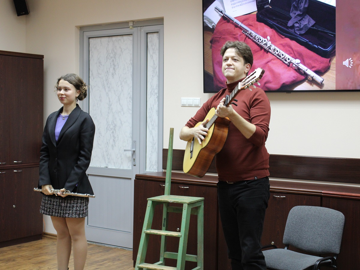 Весь вечер звучали знакомые мелодии и редкие композиции. Нежные переливы флейты и теплые аккорды гитары, гармонично дополняя друг друга, создавали особую атмосферу, наполняя пространство особым очарованием. Музыкальный репертуар отличался оригинальностью и разнообразием: звучали культовые хиты русского рока, мелодии американского фолка, испанская лирика и трогательные мотивы латинской музыки.