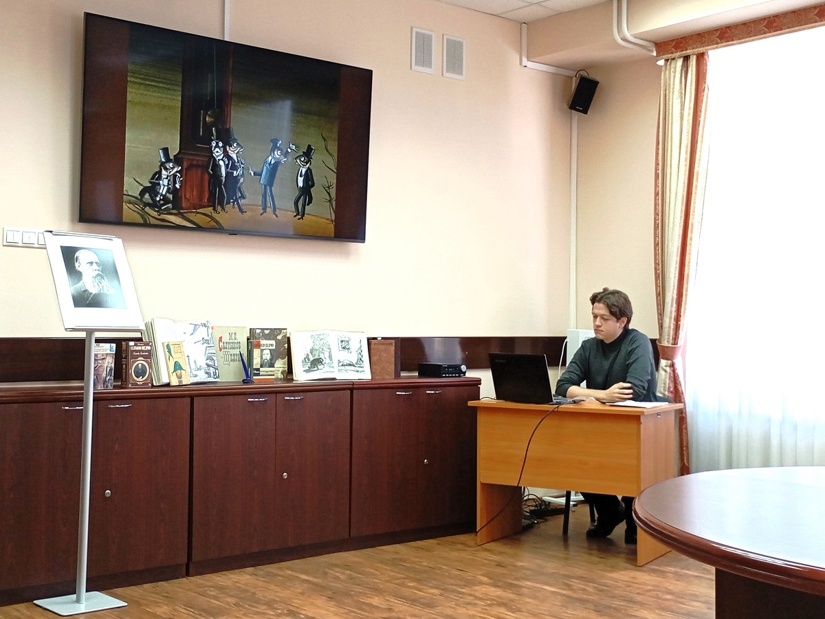Мероприятие началось с краткого, но яркого рассказа о судьбе писателя-гражданина. Размышляли о том, что происходит, когда Мастер сатиры берет в руки перо, как реальность, преломленная через призму гротеска, становится яснее и очевиднее. Ведь его сказки - не для детей, его история - не об одном городе, его герои - не просто карикатуры. Произведения Салтыкова-Щедрина - это зазеркалье, в котором с беспощадной точностью узнаваема любая эпоха, включая нашу.