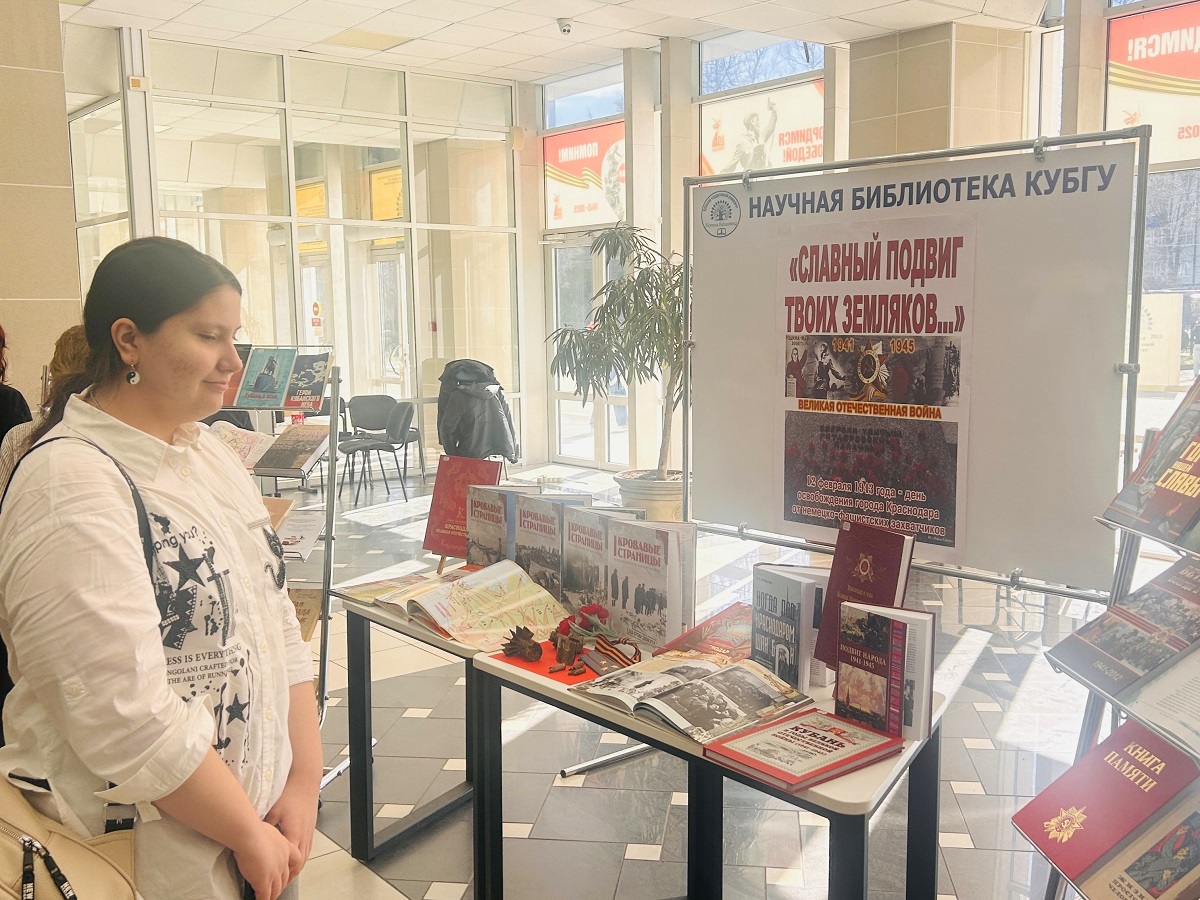 12 февраля Научная библиотека КубГУ провела в центральном холле книжную выставку-просмотр «Славный подвиг твоих земляков…», посвященную Дню освобождения Краснодара от немецко-фашистских захватчиков.