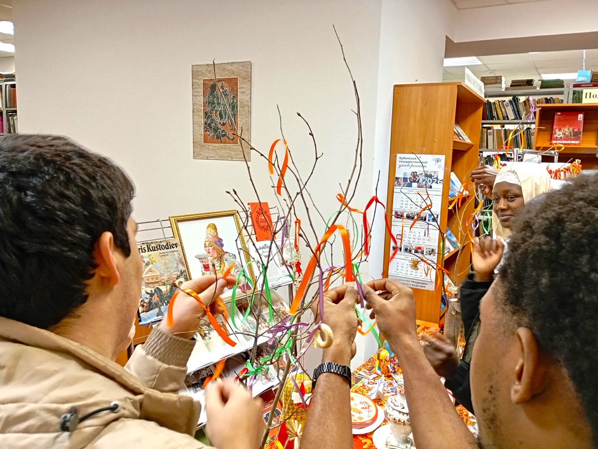 17 февраля в научной библиотеке КубГУ прошло яркое празднование Масленицы для иностранных студентов. Более 80 ребят из разных стран мира - слушатели подготовительного отделения познакомились с русскими традициями через игры, творчество и, конечно, угощения.