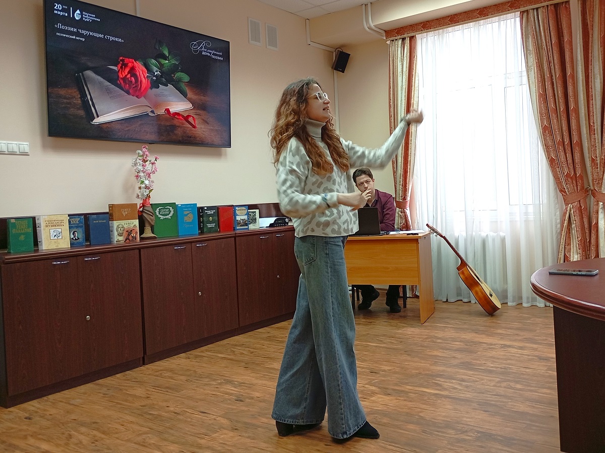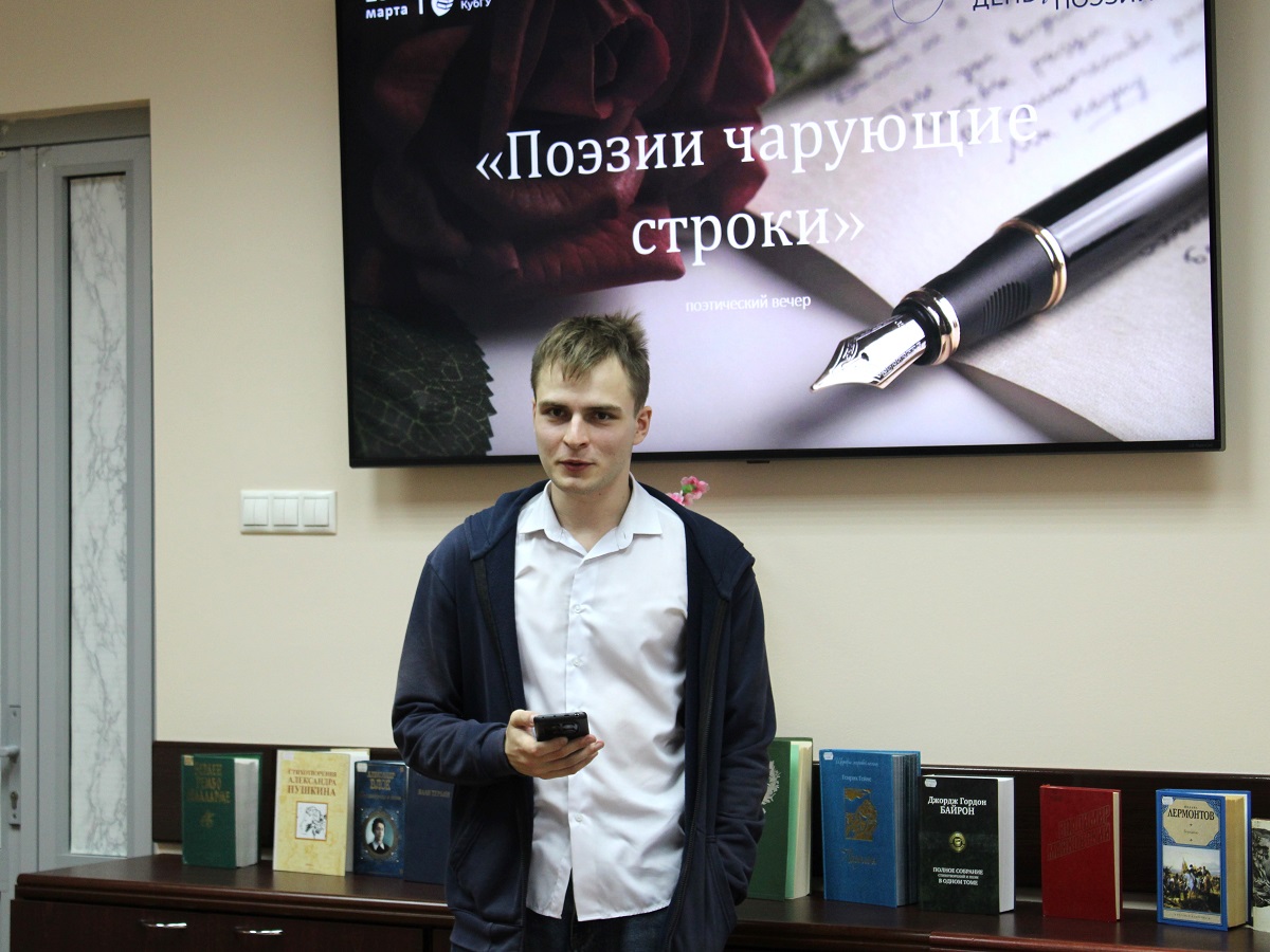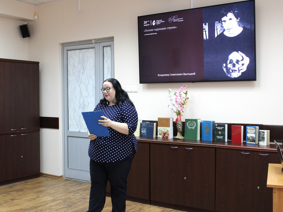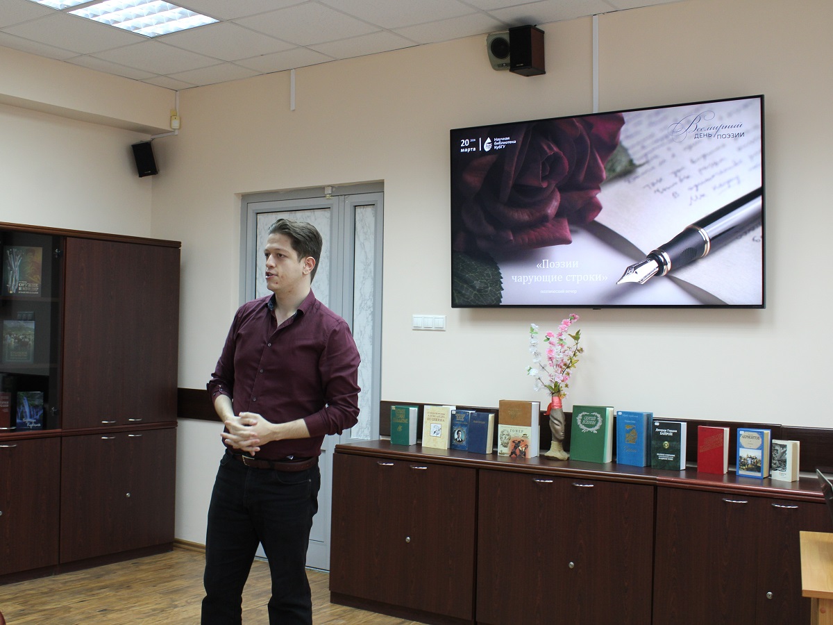 20 марта в Научной библиотеке КубГУ прошел поэтический вечер «Поэзии чарующие строки», посвященный Всемирному дню поэзии.