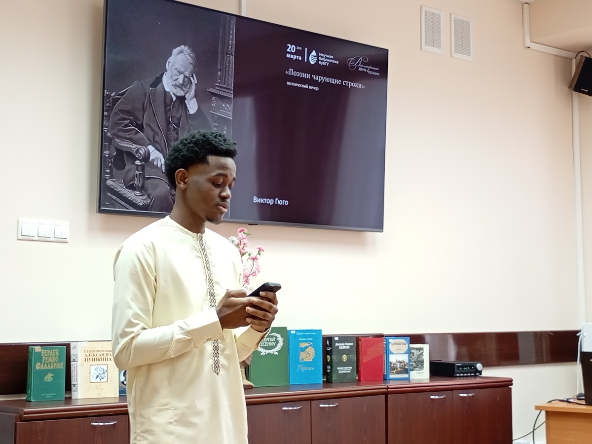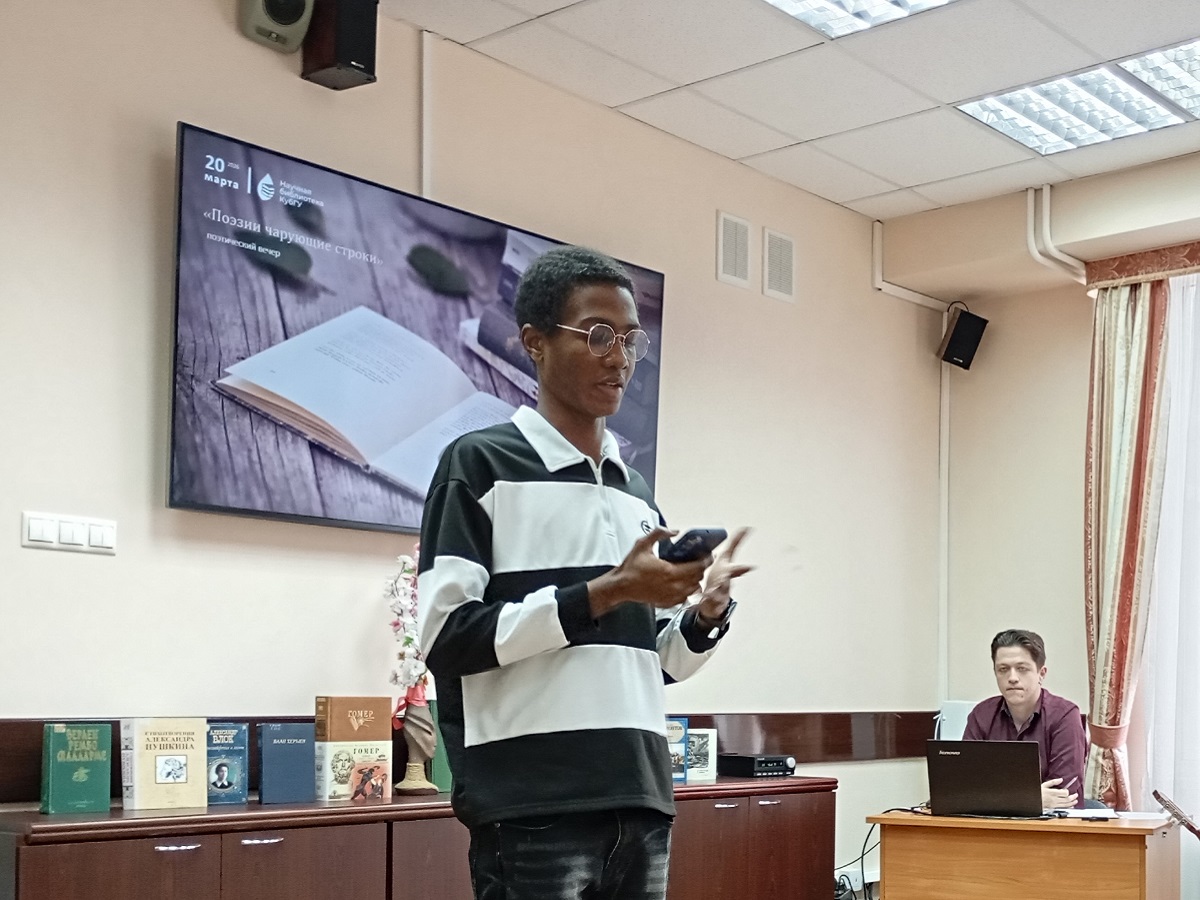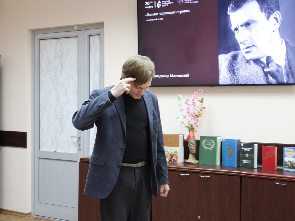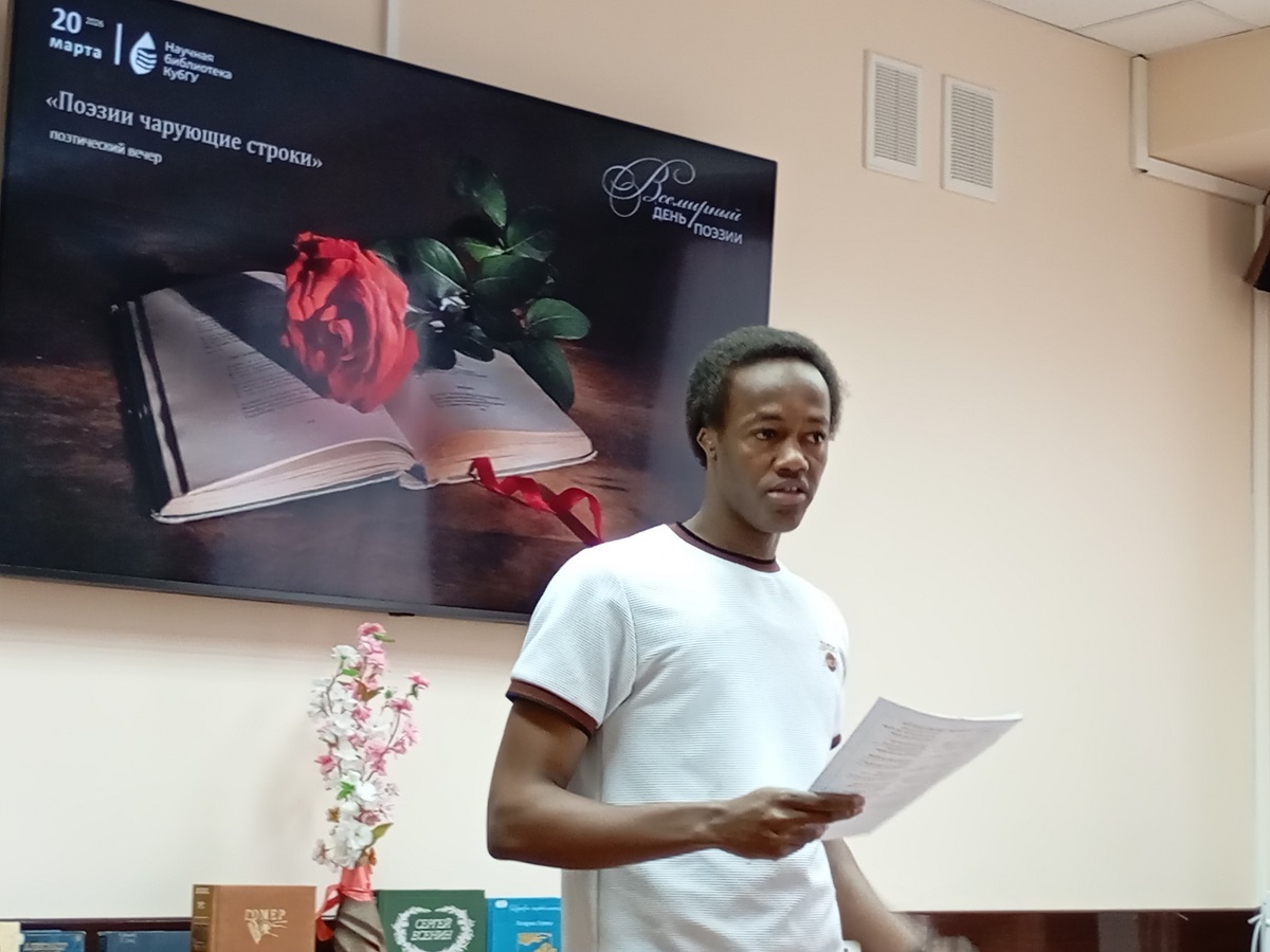 20 марта в Научной библиотеке КубГУ прошел поэтический вечер «Поэзии чарующие строки», посвященный Всемирному дню поэзии.