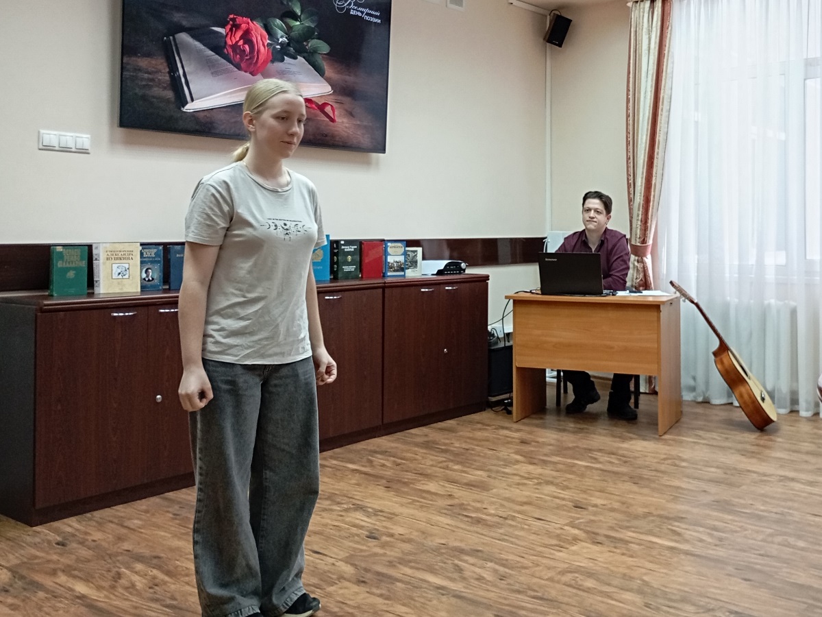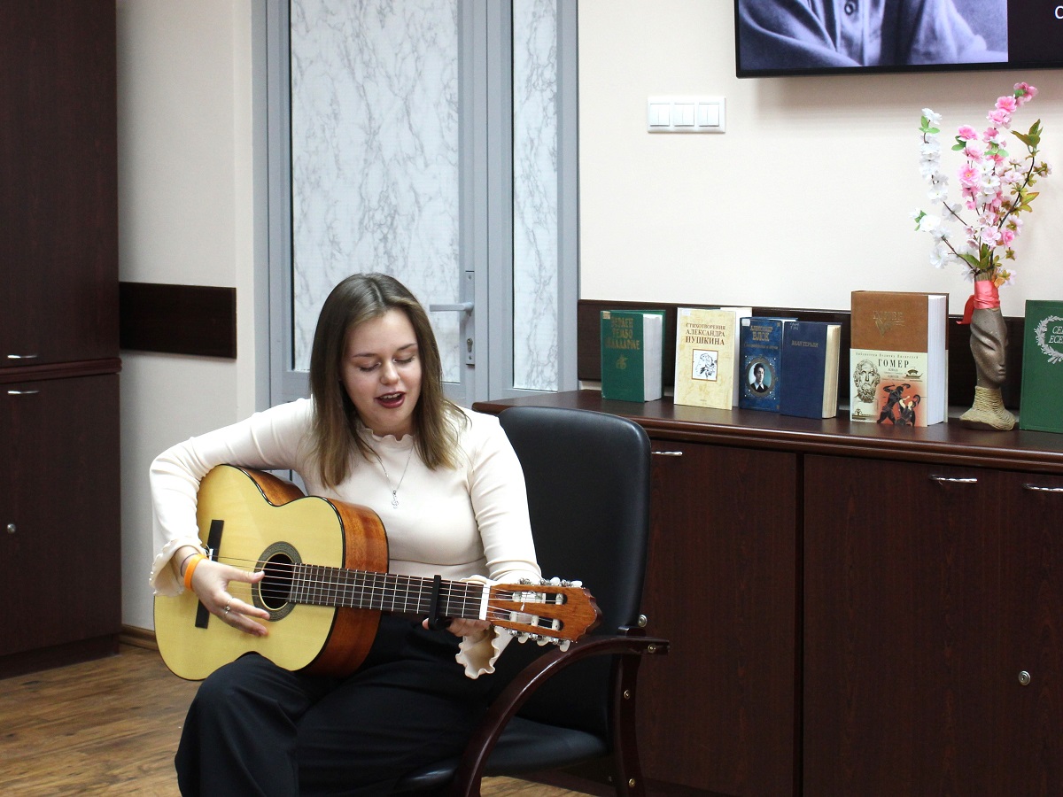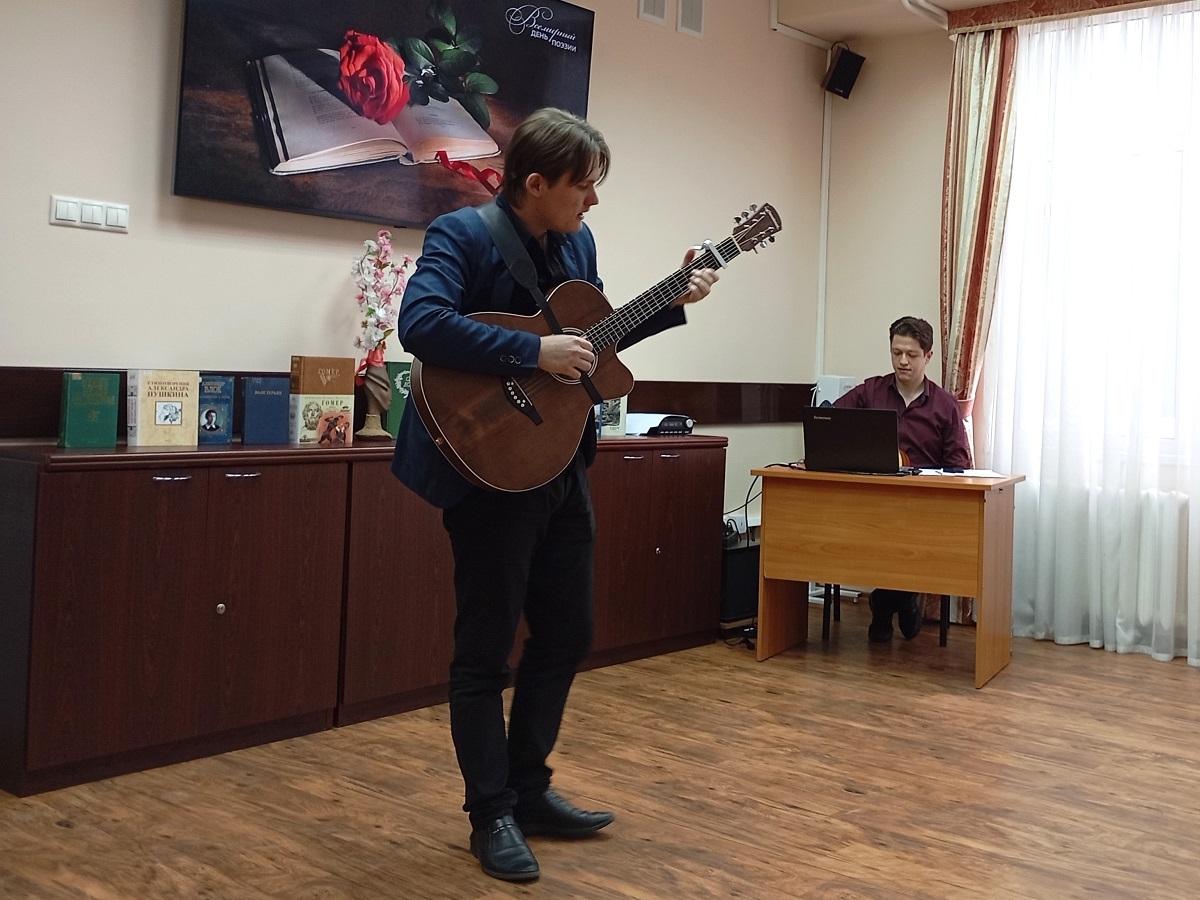 Музыкальная программа стала приятным дополнением к поэтическому вечеру. Под аккомпанемент гитары прозвучали песни на стихи Сергея Есенина, Александра Розенбаума, Сильвио Родригеса и Брюса Спрингстина.