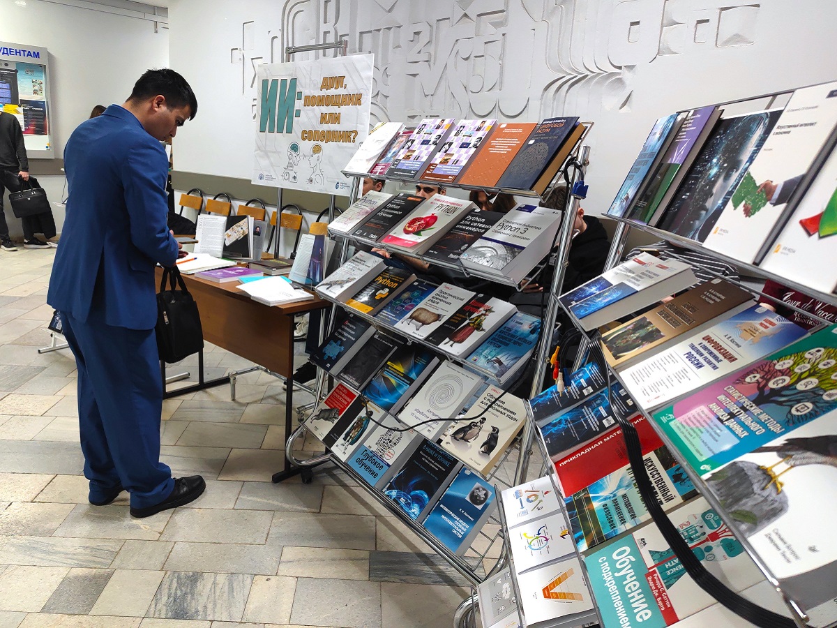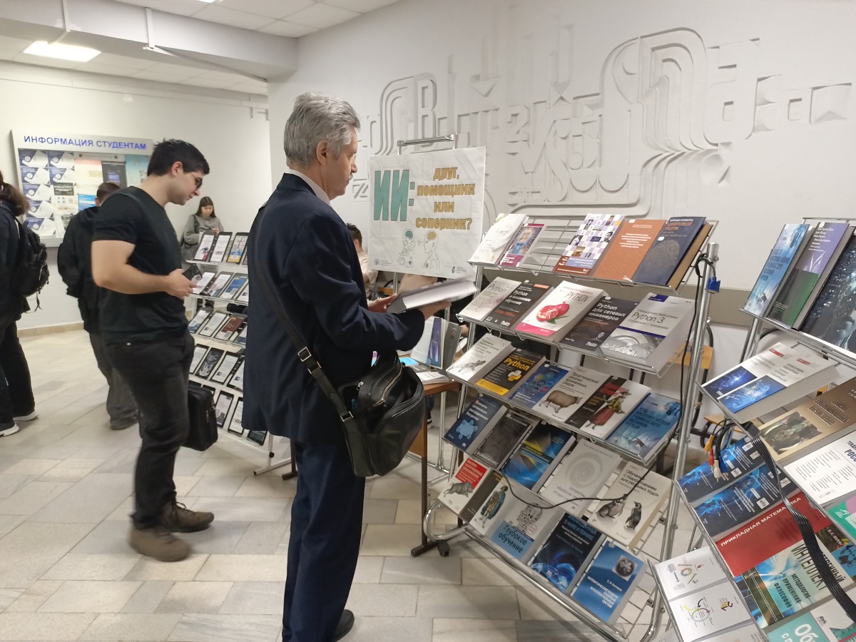 Вниманию посетителей были представлены новые печатные и электронные издания: монографии, учебники, учебно-методические пособия, а также статьи из научных журналов, отражающие самые актуальные тенденции в области искусственного интеллекта. Экспозиция включила в себя литературу, охватывающую широкий спектр направлений - от теоретических основ математического моделирования до практических разработок в сфере нейросетей и машинного обучения.