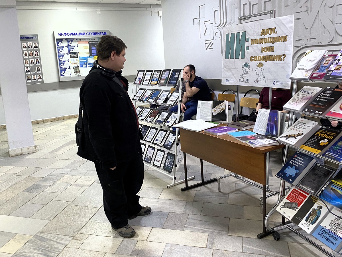 «ИИ: друг, помощник или соперник?». 24 марта Научная библиотека КубГУ провела книжную выставку на факультете компьютерных технологий и прикладной математики, посвященную Международному дню математики.