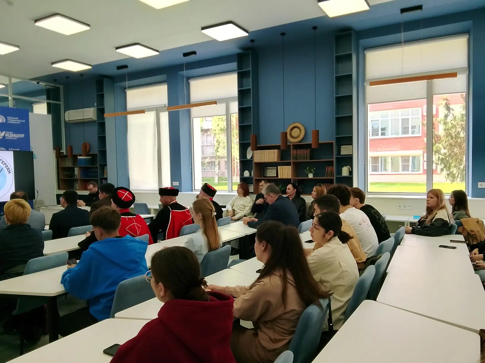 С вступительным словом к молодежи обратился проректор по воспитательной работе и социальным вопросам Николай Васильевич Редькин, обозначивший перспективы внешнеполитического контура России на ближайшее будущее. Затем слушатели узнали о проекте «Помни своего Героя» от его руководителя. В рамках встречи прошла презентация Книги памяти «Герои Земли Кубанской», а сам зал «Библиокуба» стал площадкой для фотовыставки «Посмотри в глаза героям», представляющей собой уникальный формат, позволяющий через личное восприятие сформировать уважительное отношение к подвигу защитников Отечества. Участникам встречи был анонсирован фильм, посвященный героям Специальной военной операции, – «Боль души моей». В целях формирования общероссийской гражданской идентичности перед аудиторией выступили представители общественных организаций Краснодарского края.