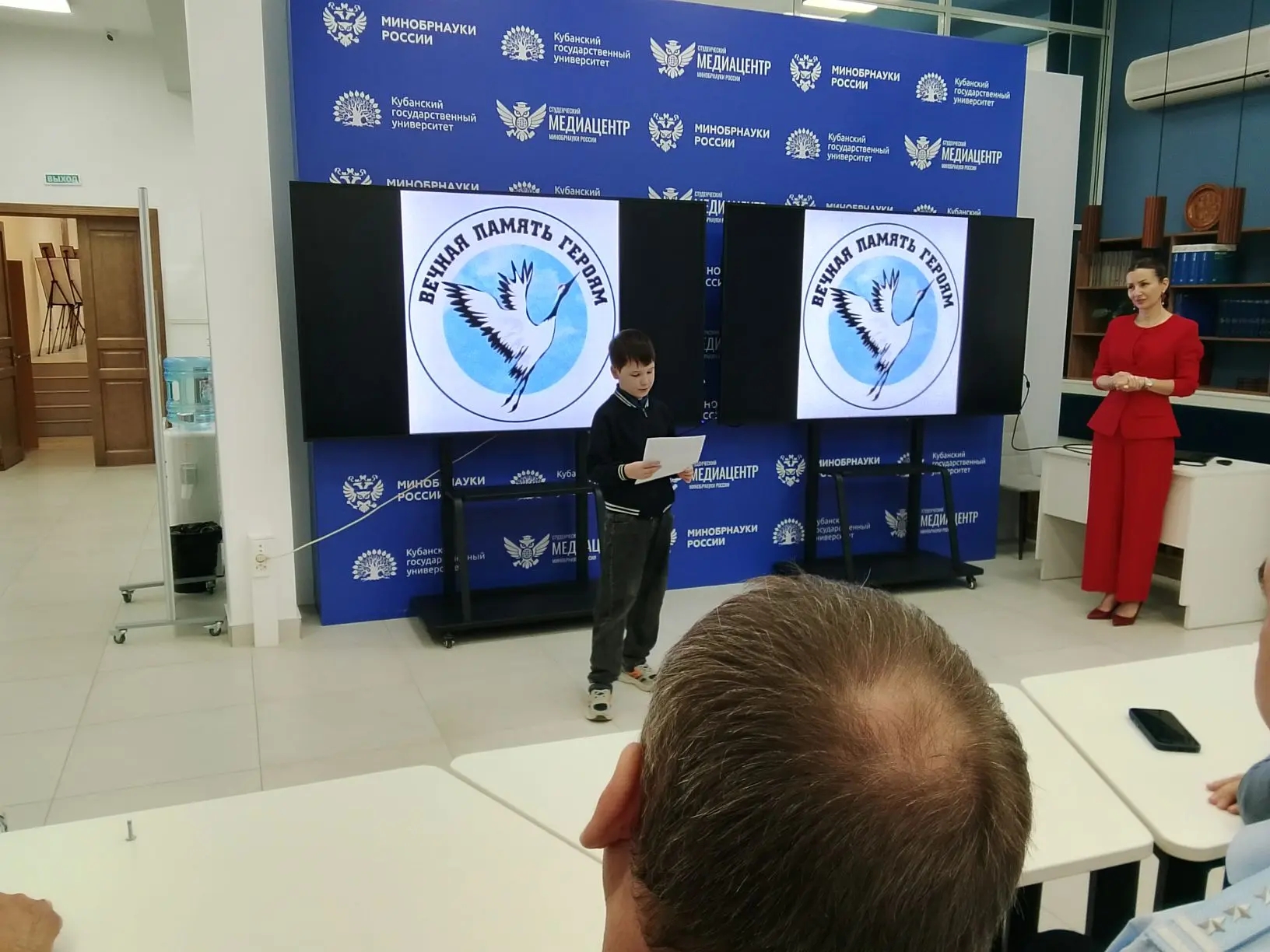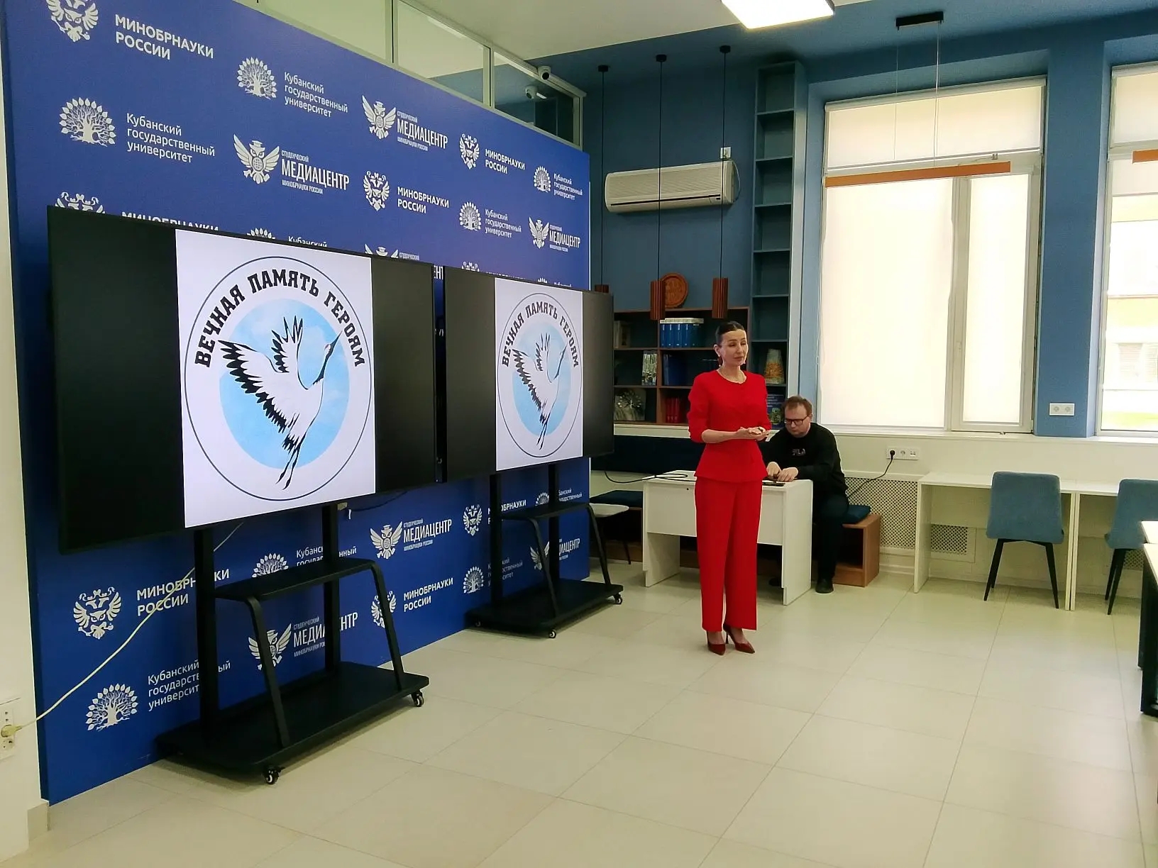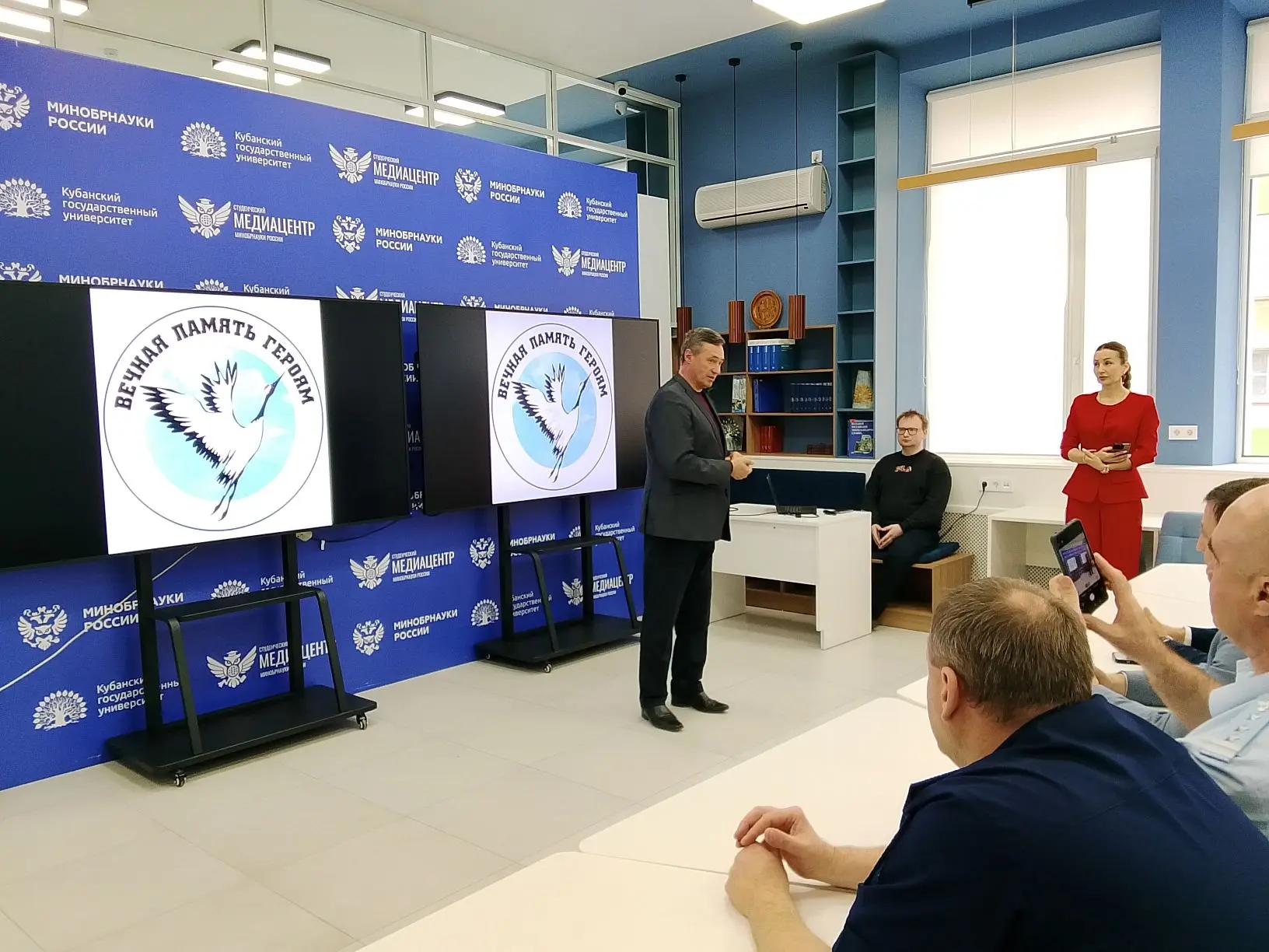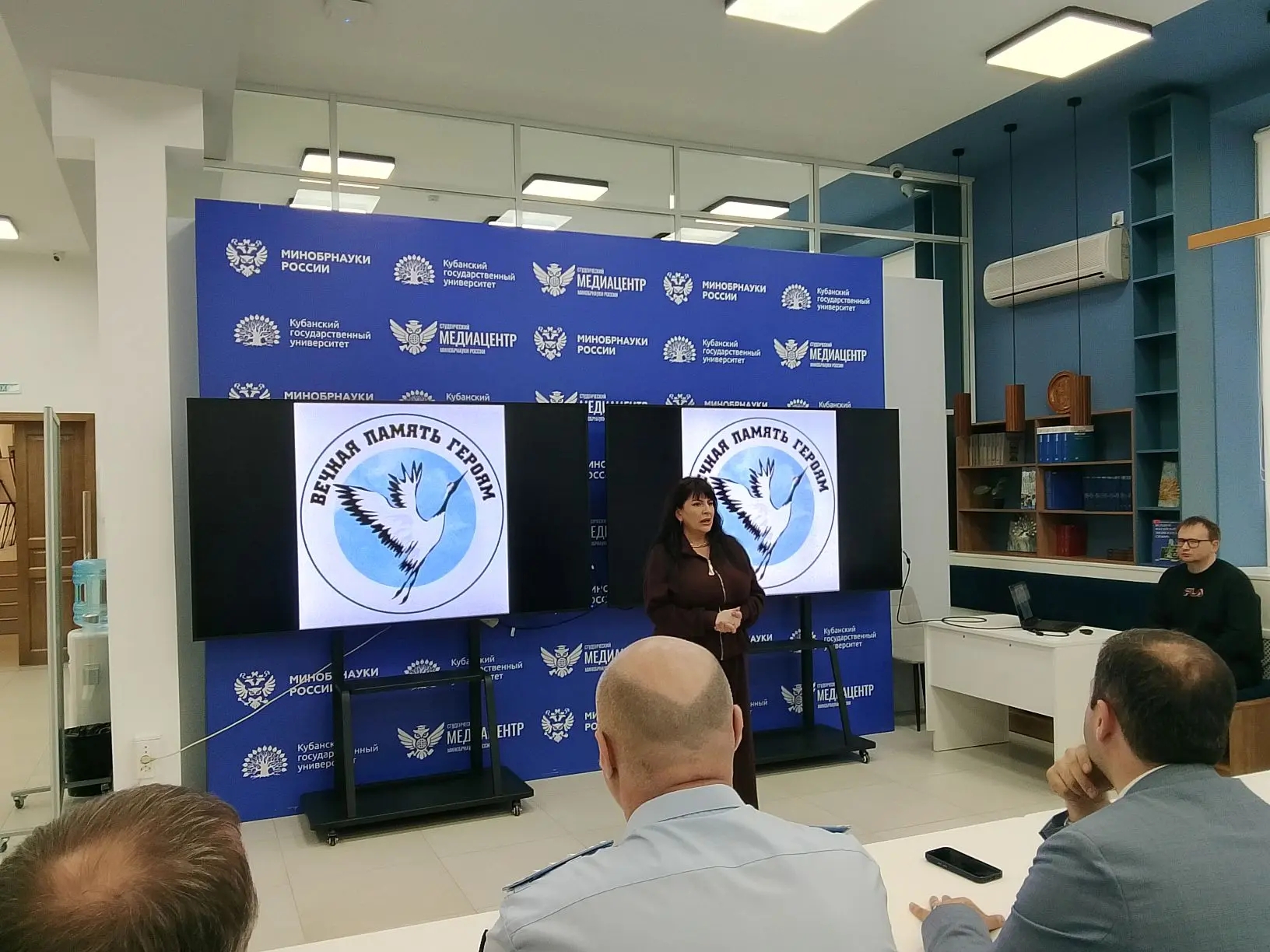 13 апреля в «БиблиоКубе» состоялась встреча, организованная Координационными центрами Кубанского государственного университета и Сибирского федерального университета совместно с Краснодарским филиалом Межрегиональной общественной организации «Вечная Память Героям». Проект «Помни своего Героя» стартовал в феврале 2026 года в Красноярске, а на Кубани проект представила его автор и руководитель Ольга Сергеевна Чижевская, Целью мероприятия являются сохранение памяти погибших защитников Отечества и формирование гражданской позиции у молодежи.