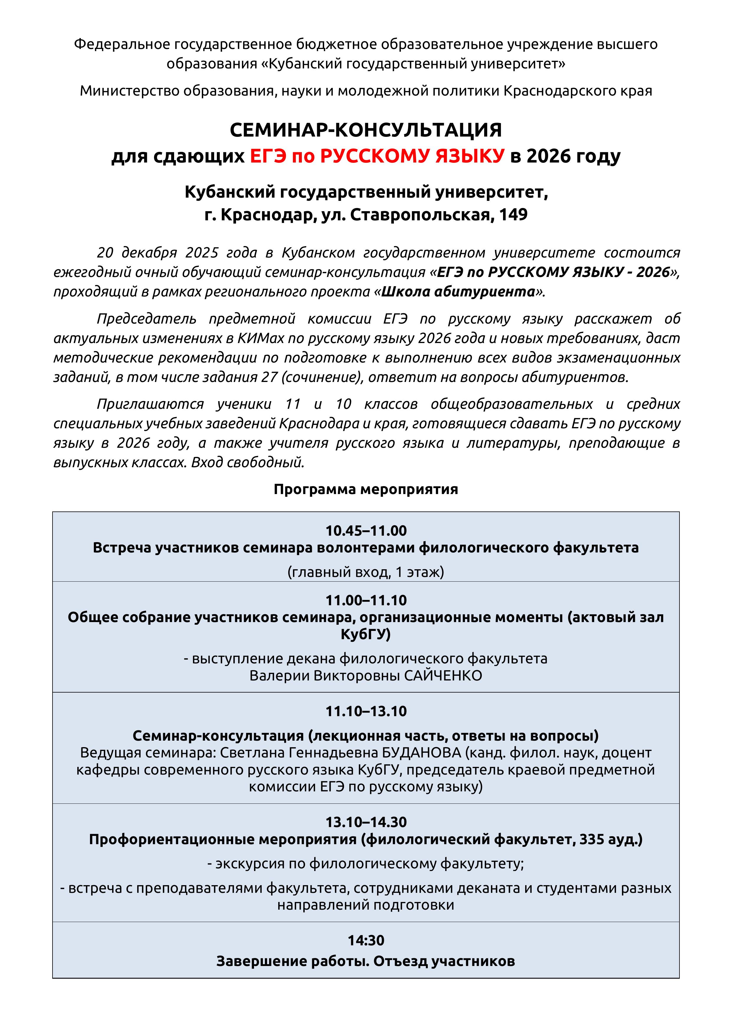 Очный семинар-консультация: ЕГЭ по русскому языку - 2026