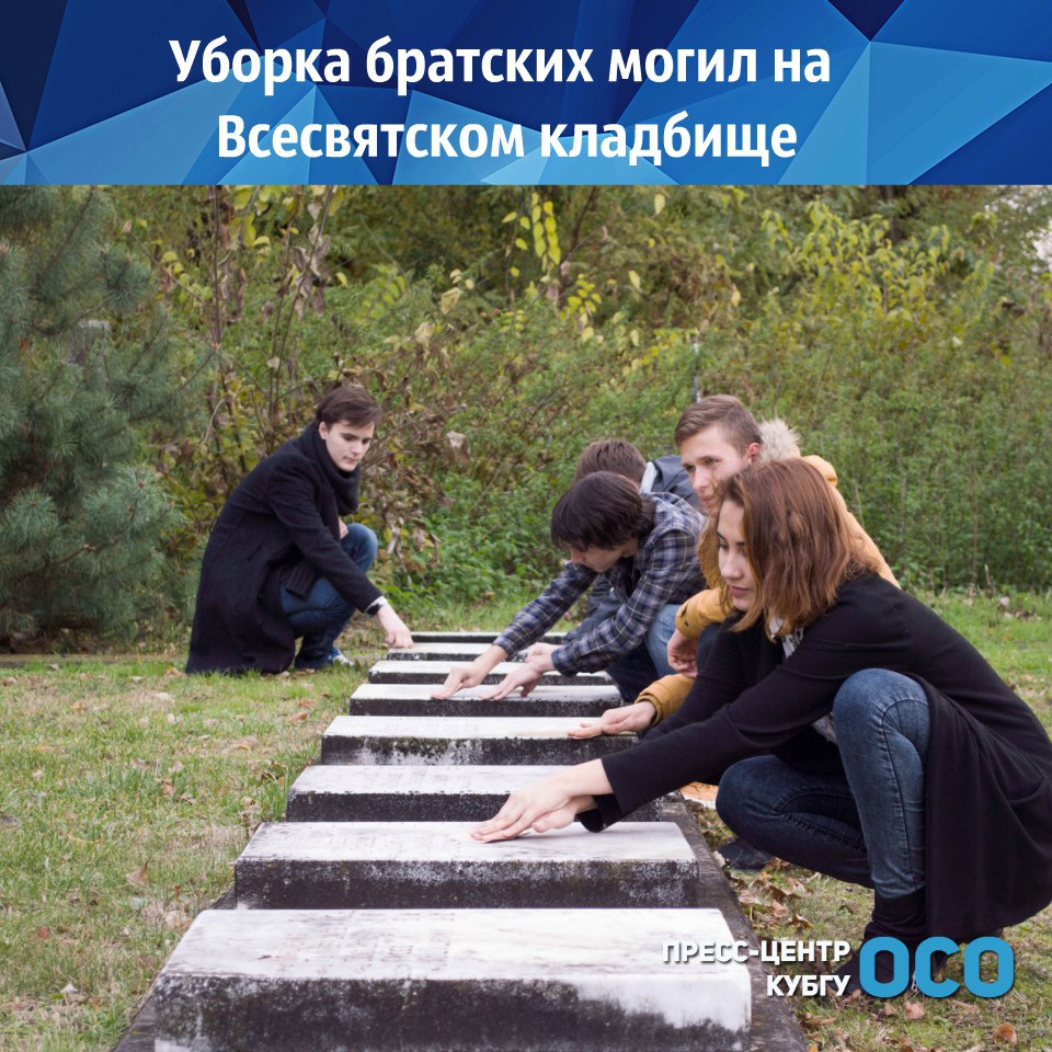 Активисты биологического и юридического факультетов 7 ноября провели акцию по благоустройству братсктих могил на Всесвятском кладбище. Волонтеры очистили плиты возле Стеллы, привели в порядок внешний облик захоронений и облагородили территорию возле них.
