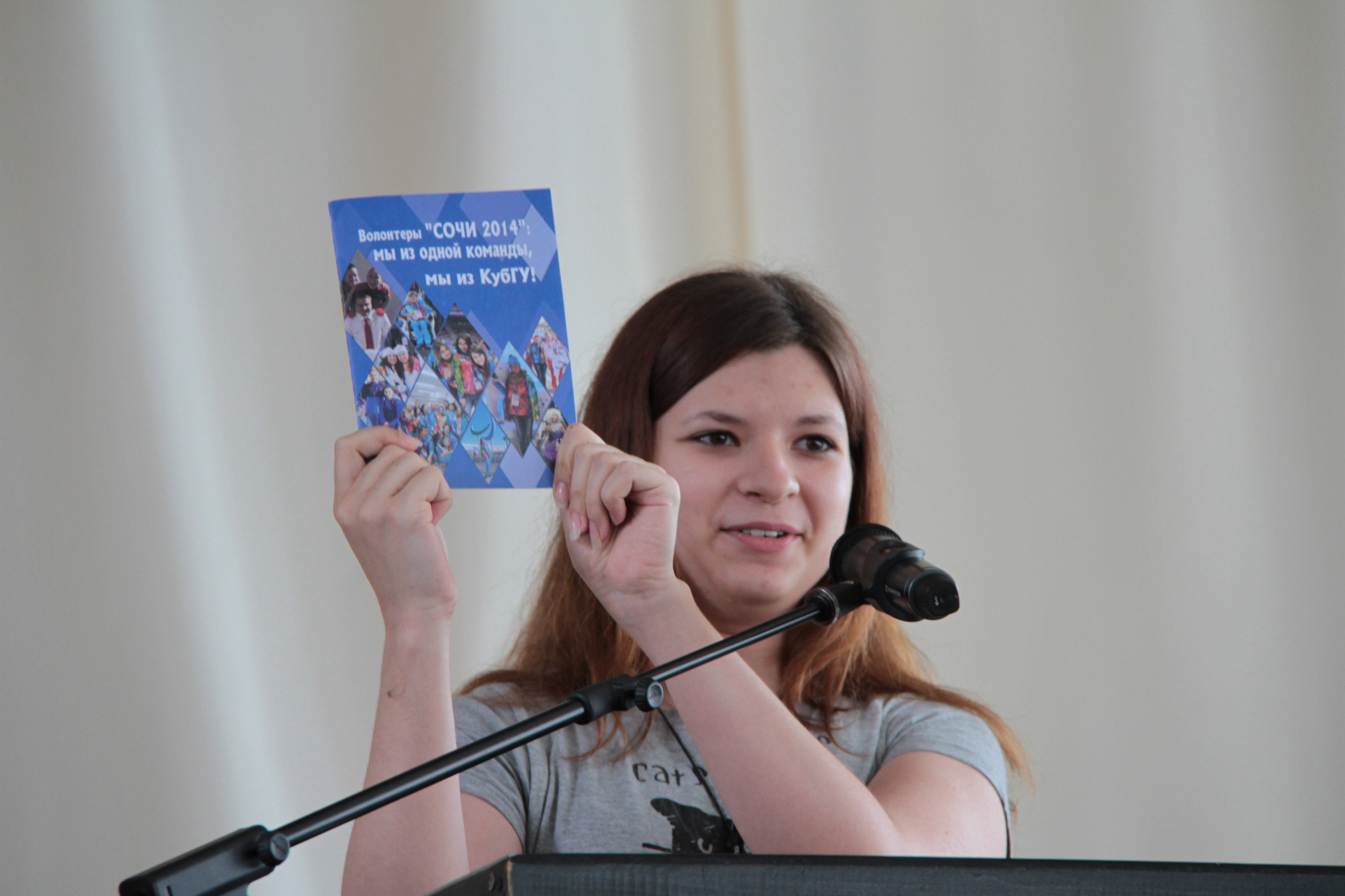 Хорошо помню то время, когда в этом же зале мы собирались с вами на обучающие тренинги, когда вопросов было больше, чем ответов, – заметила директор ВЦ КубГУ Е.В. Ишкова. – И вот все завершилось, Игры в Сочи состоялись, они стали лучшими во многом благодаря работе волонтеров. Спасибо вам огромное.