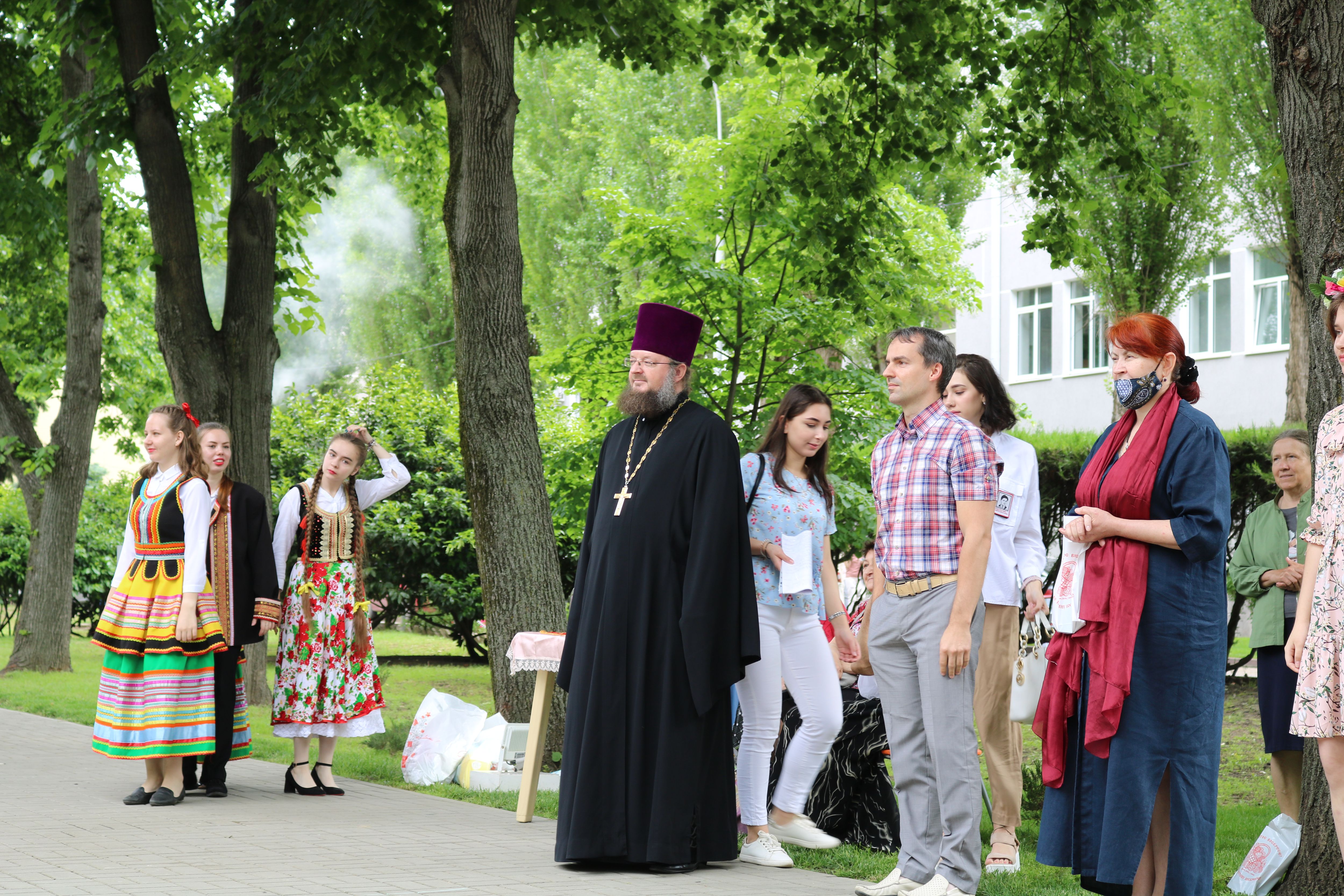 On May 24, 2021, the Day of Slavic Writing and Culture was celebrated at Kuban State University. That day, Archpriest Pavel Romanenko, the Archpriest of the future church of St. Cyril and Methodius, served a prayer at the Cross of Worship. The participants of the prayer service were parishioners – the residents of the city, students and teachers of Kuban State University.