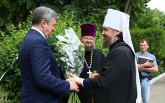 The celebration was marked by the visit of Metropolitan Gregory of Ekaterinodar and Kuban. The Rector of Kuban State University, Mikhail Borisovich Astapov, met the Metropolitan at the Cross of Worship and showed him the area allocated for the construction of the church in honor of Saints Cyril and Methodius within the University territory, and the foundation stone of the church, blessed by Patriarch Kirill of Moscow and All Russia in 2018.