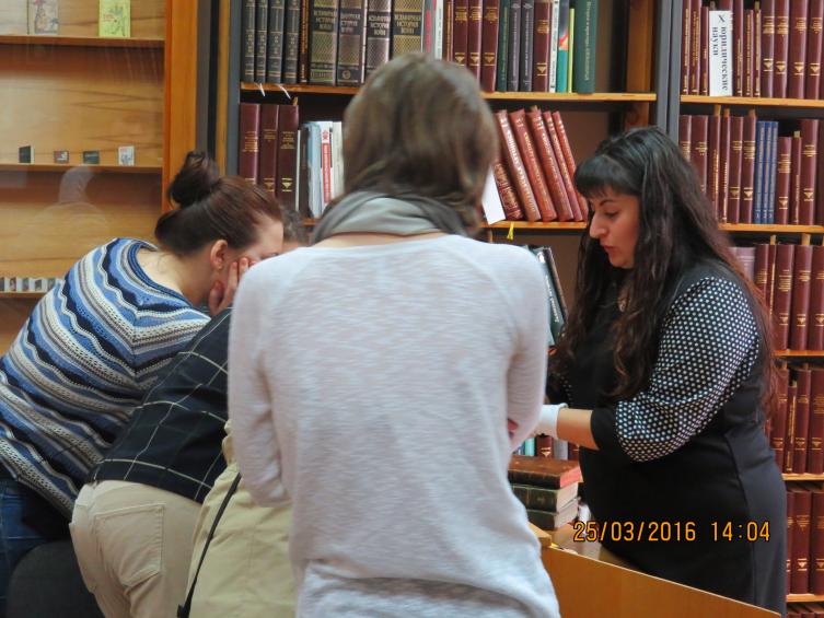 Студенты географического факультета в Отделе редкой книги библиотеки КубГУ.