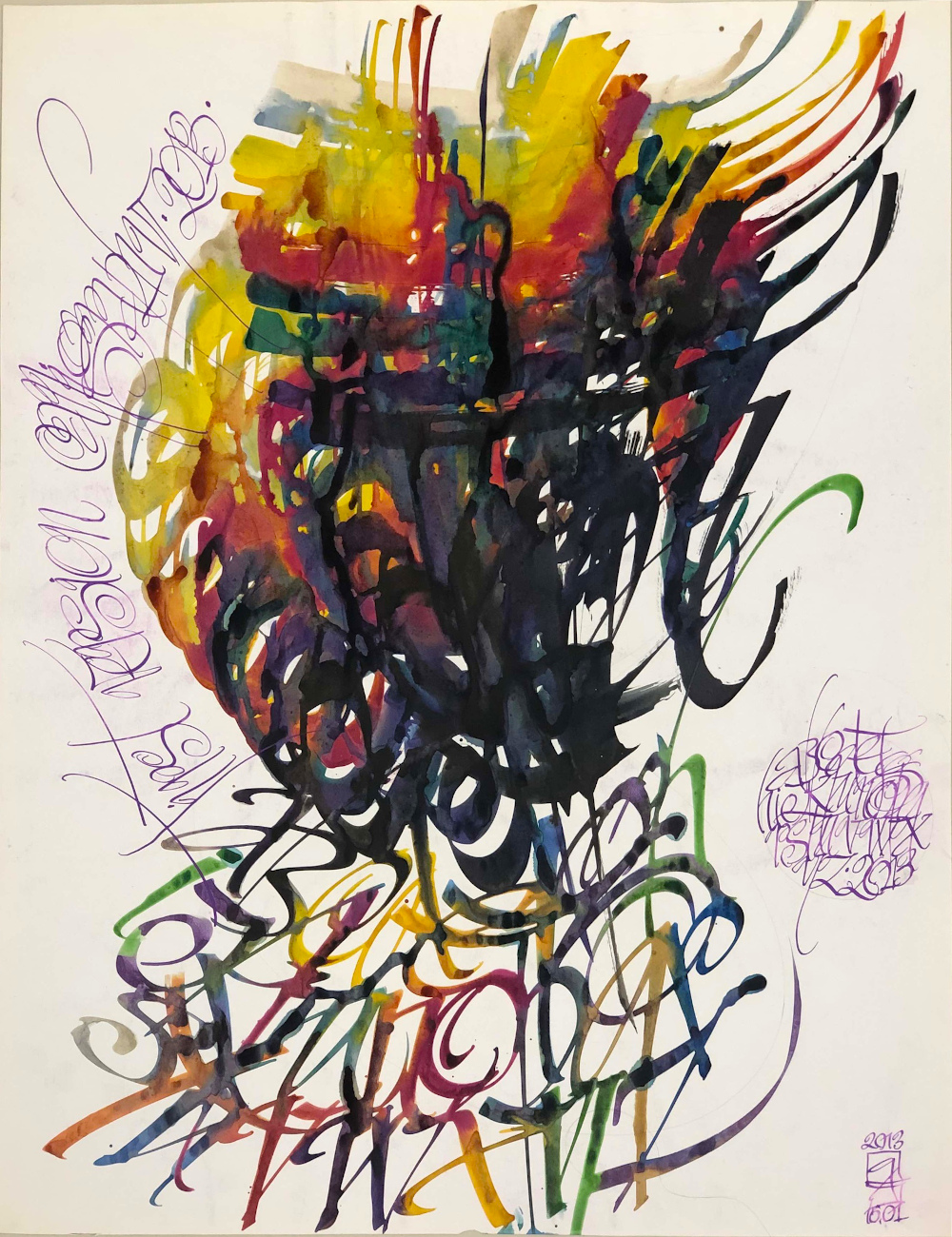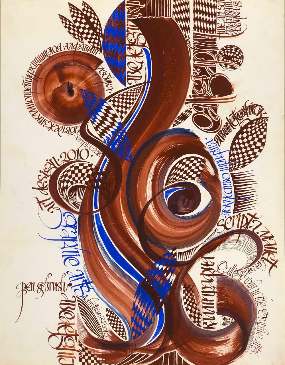 Творчество автора глубоко интуитивно. Работы рождаются благодаря уже отточенному мастерству, когда рука сама ведет за собой смыслы, выписывая алфавит, отдельные слова или цитаты Иосифа Бродского.