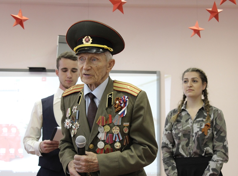 В честь Дня Победы студенты подготовили концертные номера. Прозвучали «Журавли», «Синий платочек» – песни, которые находятся вне времени. Ребята исполнили «Майский вальс» и проникновенные стихотворения военных лет.