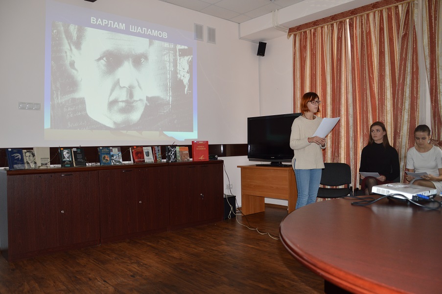 Внимательно, затаив дыхание, слушали студенты отрывки из «Колымских рассказов» В. Шаламова. Историю не изменить, но знать и помнить о трагических событиях необходимо, чтобы вновь не допустить повторения репрессий.