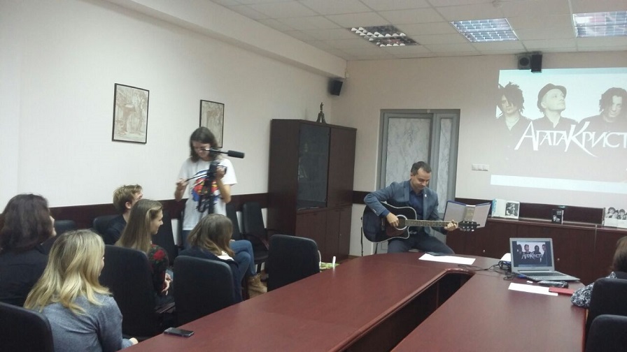 Приятным сюрпризом для собравшихся стало выступление проректора КубГУ по воспитательной работе и социальным вопросам Николая Васильевича Редькина, который рассказал о своей любимой рок-группе – «Агата Кристи», исполнил песню из ее репертуара, а также песню собственного сочинения, сорвав бурные аплодисменты.