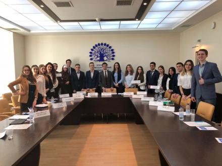 Отдел международных и межрегиональных связей департамента инвестиций и развития малого и среднего предпринимательства Краснодарского края совместно с Кубанским государственным университетом 5 апреля провели «Модель ООН», в котором приняли участие студенты факультета истории, социологии и международных отношений, обучающиеся по направлению «международные отношения».