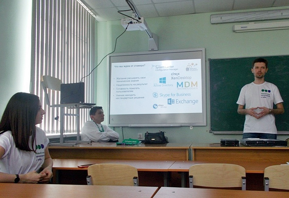 Под таким девизом состоялась 18.04.18 познавательная и очень полезная встреча для студентов старших курсов факультета математики и компьютерных наук КубГУ с представителями компании «МегаФон» Кавказкого филиала: Слипченко Марией– специалистом HR, Посиделовым Денисом– экспертом по серверным платформам, Кудряшовым Михаилом – экспертом по системам управления устройствами, приложениями и защиты информации, Дрогалевым Сергеем – экспертом по федеральной технической поддержке пользователей, Васюковым Максимом –старшим менеджером по платформам управления технологическими ресурсами и Сцегенным Сергеем– старшим инженер по поддержке систем мониторинга ИТ-инфраструктуры (выпускником ФТФ КубГУ).