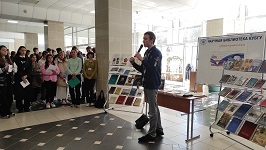 13 октября в центральном холле КубГУ Научная библиотека провела поэтический флешмоб «Перечитывая Лермонтова…». Мероприятие прошло в рамках XI Международной акции «День лермонтовской поэзии в библиотеке» и приурочено к Дню рождения поэта. Флешмоб был организован в формате «открытого микрофона»: каждый желающий смог принять в нем участие, поделиться своими впечатлениями о творчестве Лермонтова.