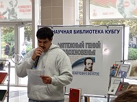 15 октября в центральном холле КубГУ Научная библиотека провела поэтический флешмоб «Перечитывая Лермонтова…». Мероприятие организовано в рамках XII Международной акции «День лермонтовской поэзии в библиотеке» и приурочено к 210-летию со дня рождения великого русского поэта. В поэтическом флешмобе прозвучали стихи «Пророк», «Выхожу один я на дорогу», «Родина», «Дума», «И скучно и грустно, и некому руку подать», «Мцыри», «Нет, не тебя так пылко я люблю», «Нищий», «Парус», «Я не унижусь пред тобою…», «Тучи», «Утес», «Умирающий гладиатор», «Молитва», «К Сушковой», «Горные вершины», «Нет, я не Байрон» и многие другие. Флешмоб прошел в формате «открытого микрофона». В нем приняли активное участие студенты ФИСМО, РГФ, ИНСПО, филологического, экономического факультетов, а также иностранные студенты подготовительного отделения, изучающие русские язык: Диарра Тумани (Мали), Хуан Карлос (Колумбия), Кхули Хуссам (Марокко), Рикардо Рауль (Венесуэла), Шовэ Микаэль (Франция), Хамато Алаа (Палестина), Беземе Беземе Крис Леве (Кот-д’Ивуа́р), Бернабе Исаи (Перу), Рональд Галарза (Испания), Маму Карамоко (Мали), Джуниор Тханг (Камерун), Гислаин Нгонг (Камерун), Мишелл Владимирски (США), а также студент филологического факультета из Судана Мустафа Анас Мухаммед Харун. Флешмоб прошел в теплой, дружеской обстановке и стал не только данью памяти великому поэту, но и отличной возможностью выразить любовь к его творчеству.
