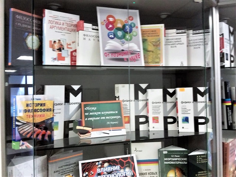 На выставке представлена литература по истории и философии науки, о направлениях развития современной науки и техники, а также о выдающихся ученых и их великих свершениях.
