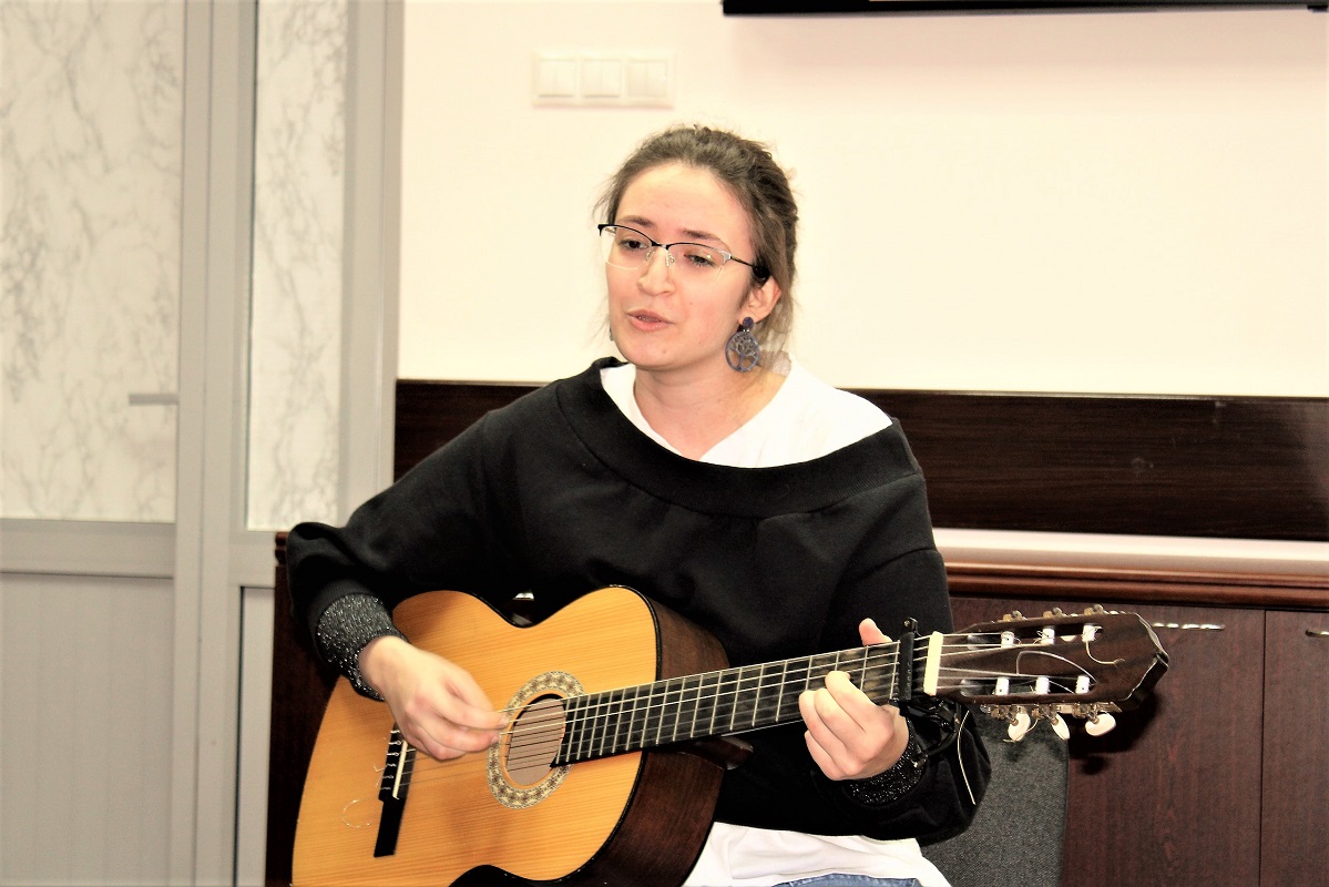 С большим вдохновением поделились собственным творчеством: Д. Григоренко (филфак, 1 к. магистратура), А. Арнаутова, М. Шипелова, Д. Михненко (ИГГТиС). Песню собственного сочинения исполнил Г. Курбатов, ФТФ, 2 к.