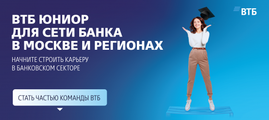 Начните свой профессиональный путь в ВТБ — отправляйте заявку до 10 июня включительно: https://clck.ru/jP38n