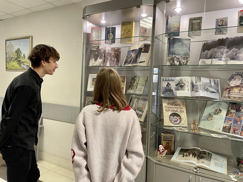 На выставке представлены фото и художественные альбомы с репродукциями картин известных художников, посвященных зиме, зимним праздникам, традиционным народным гуляниям и забавам.