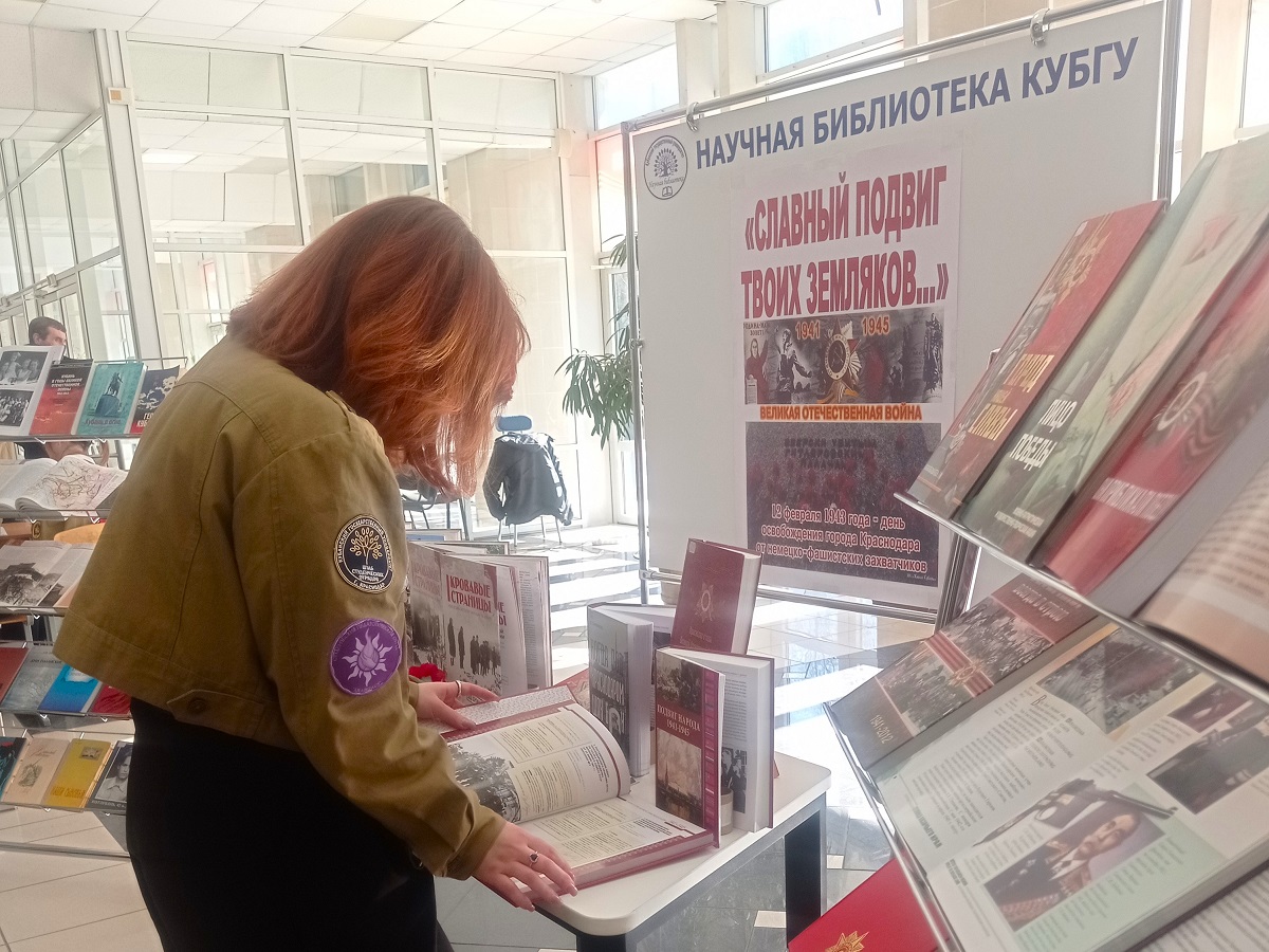 12 февраля Научная библиотека КубГУ провела в центральном холле книжную выставку-просмотр «Славный подвиг твоих земляков…», посвященную Дню освобождения Краснодара от немецко-фашистских захватчиков.