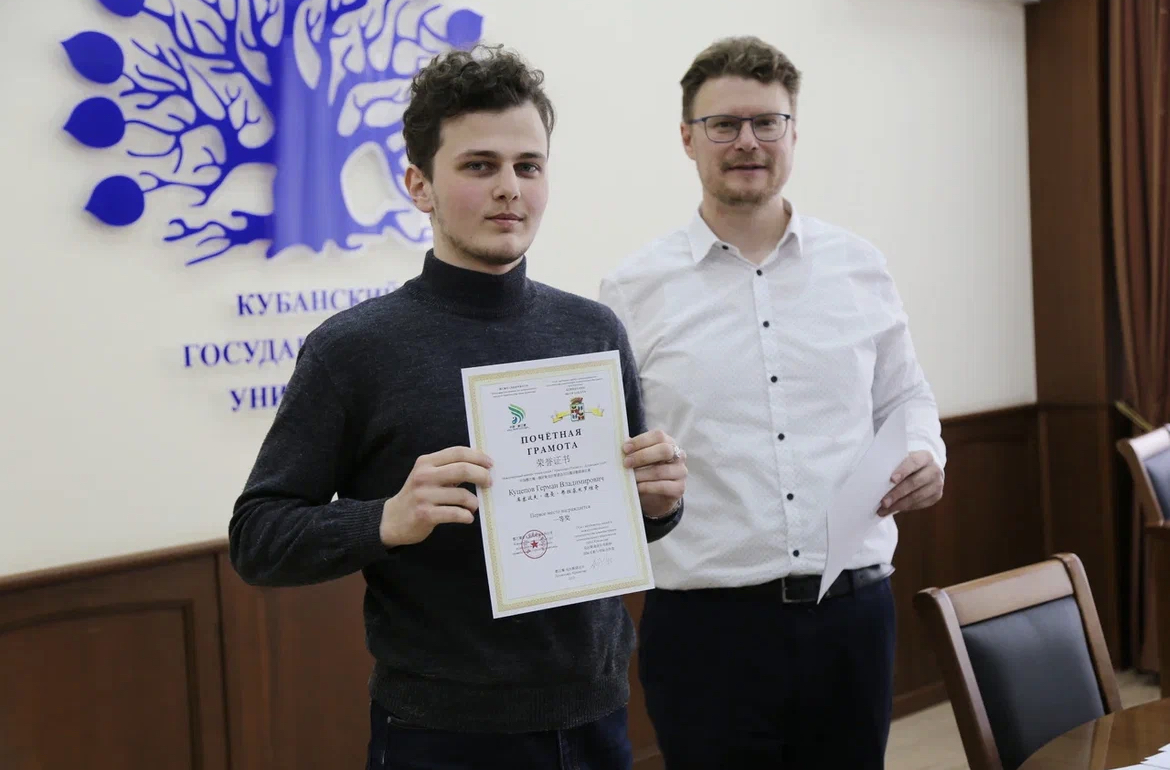 Победителей в режиме онлайн в торжественной обстановке наградили декан факультета истории, социологии и международных отношений КубГУ Александр Евтушенко и директор отделения языков стран Центральной и Восточной Европы Чэндуского института при Сычуаньском университете иностранных языков госпожа Ян Лю.