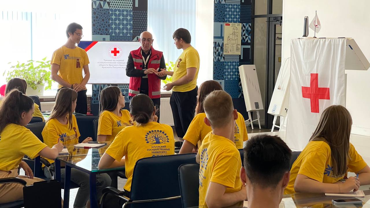 16-17 мая студенты факультета педагогики, психологии и коммуникативистики Кубанского государственного университета прошли обучение по оказанию психосоциальной помощи лицам, затронутым Украинским кризисом. Оно было организовано Обществом Российского Красного Креста при поддержке отделения Российского Красного Креста в Краснодаре.