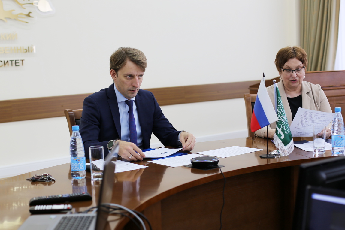 7 июня состоялась онлайн встреча представителей Кубанского государственного университета и Университета Короля Фейсала. Обсуждение перспектив совместной работы стало возможным благодаря визиту в Королевство Саудовской Аравии в мае этого года делегации Кубанского государственного университета во главе с ректором Михаилом Астаповым.