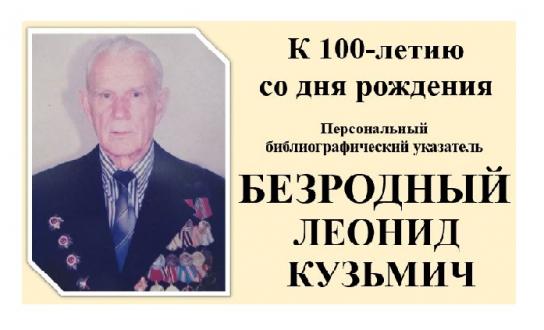 Данный указатель подготовлен к 100-летнему юбилею кандидата философских наук, доцента кафедры философии, ветерана Великой Отечественной войны Леонида Кузьмича Безродного.