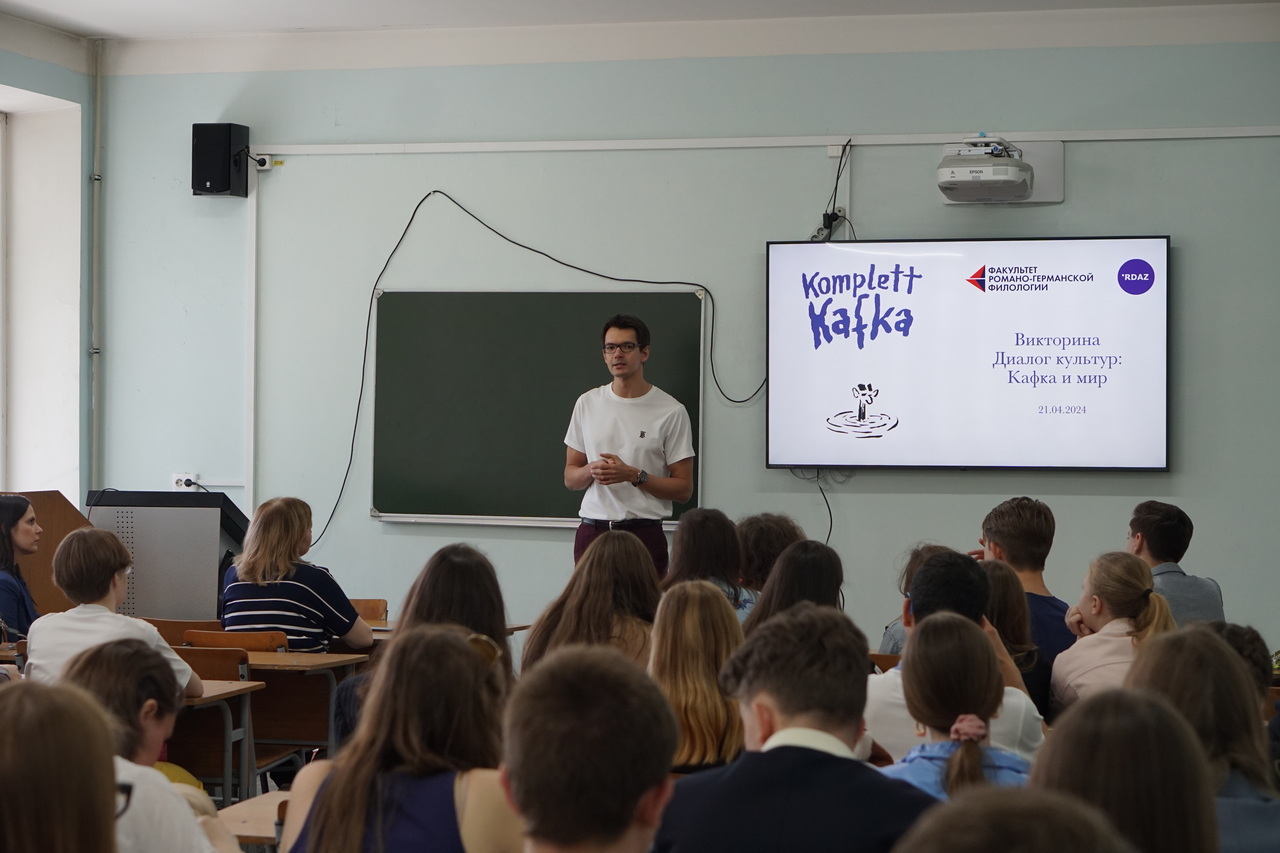 21 апреля на факультете романо-германской филологии Кубанского государственного университета в рамках плана профориентационной работы со школьниками состоялось мероприятие «Диалог культур: Кафка и мир». Большой праздник, организованный для учеников краснодарских школ в форме интерактивного фестиваля, был подготовлен преподавателями кафедры немецкой филологии.