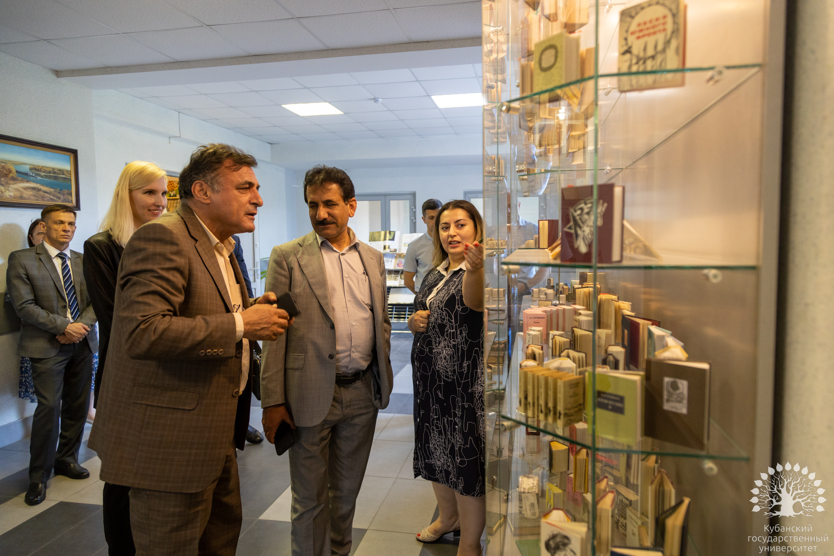 Гостям провели обзорную экскурсию по университету: показали исторический музей, научную библиотеку и отдел редких книг, познакомили с инфраструктурой. Особый интерес вызвала выставка книг, посвященных культуре Ирана.