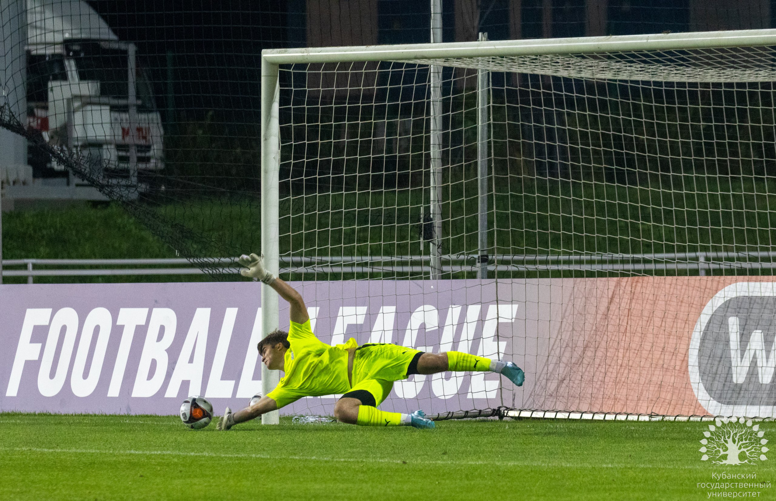 Игроки ФК «КубГУ» увеличили темп игры и добились своего, сравняв счёт на 51 минуте. Автором заветного гола стал молодой футболист – Денис Масалитинов. Ничья устраивала студентов, однако в КубГУ принято побеждать красиво! На 53 минуте тренерский штаб кубанцев запросил просмотр ВАР на потенциальный пенальти в ворота московской команды. Вердикт судьи – одиннадцатиметровый. К точке подошёл центральный защитник Адама Диоманд. Он уверенно реализовал свой удар, после чего рванул к скамейке. Радости не было предела!
