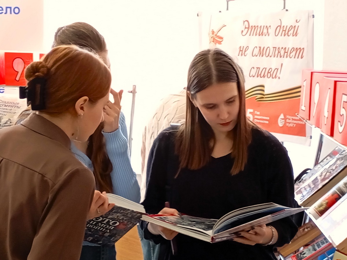 Студенты, преподаватели и сотрудники университета имели возможность погрузиться в страницы героического прошлого нашей Родины, познакомиться с эксклюзивными публикациями, такими как личные дневники и письма солдат с полей сражений, вспомнить выдающихся земляков-участников войны, чьи имена навечно вписаны в историю родного края.